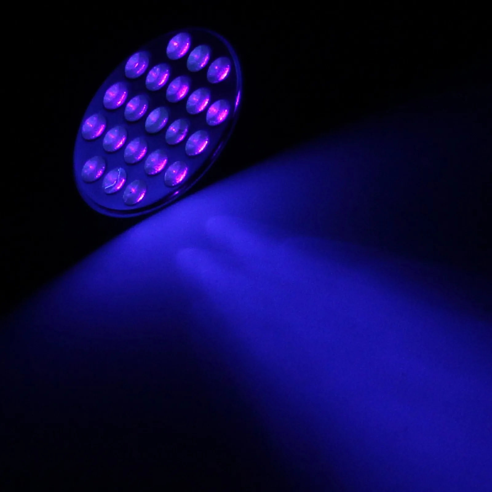 Это Ультрафиолетовый светодиодный фонарик с 21 светодиодный лампой. Благодаря алюминиевому корпусу светильник весит и переносится. Идеально подходит для кемпинга,
