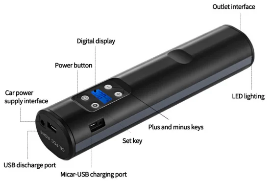 1.TireAir pump2.Cigarette power cable3.надувная трубка 4. Надувные фитинги 5.USB кабель для зарядки