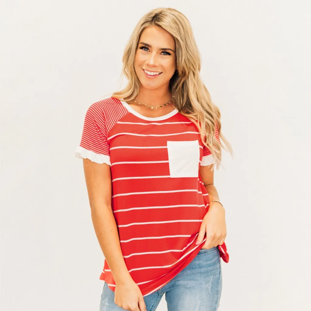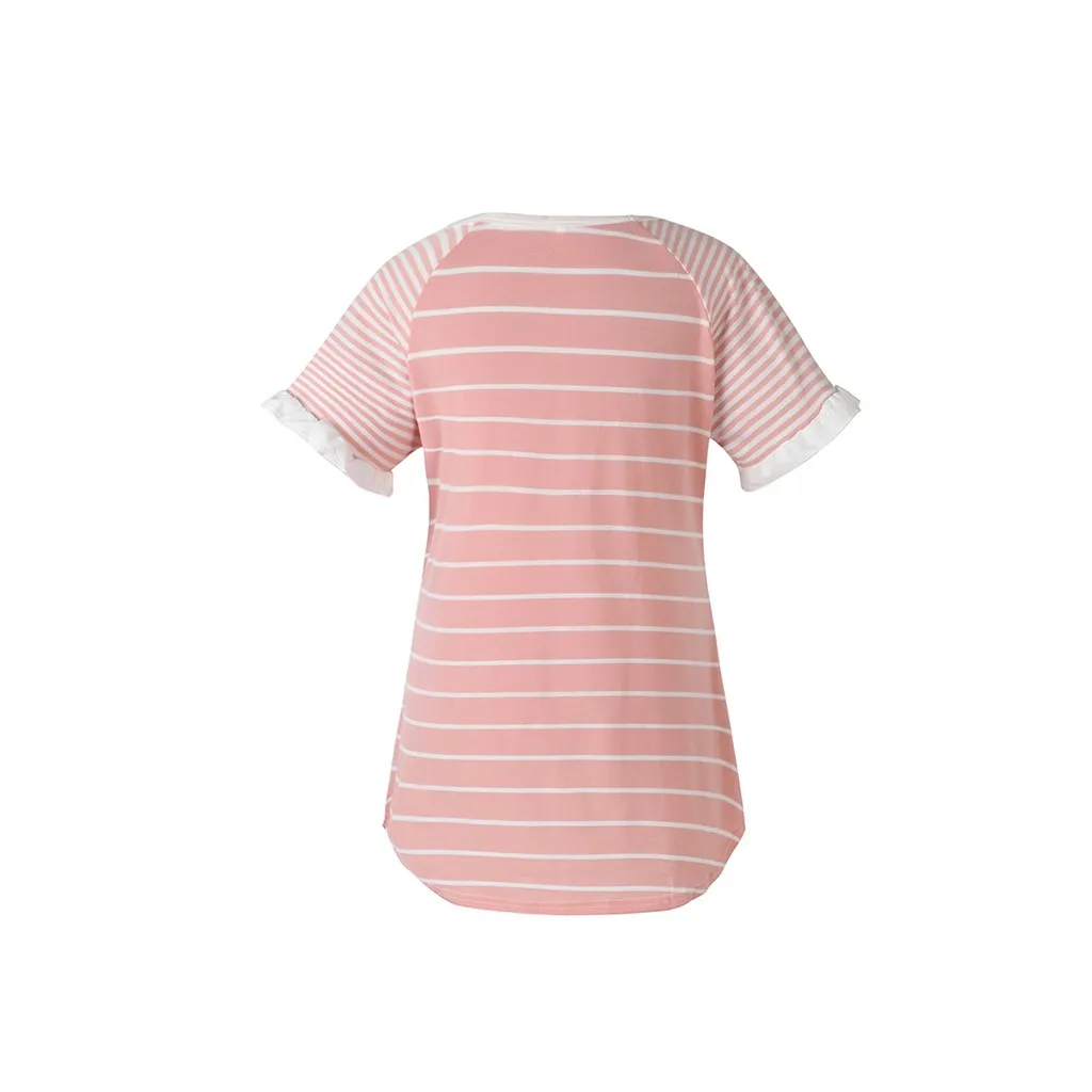 Women Maternity Short Sleeve Striped Nursing Tops T-shirt For Breastfeeding