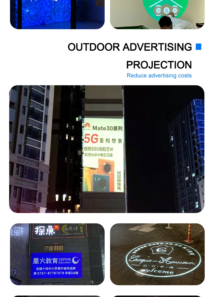 1. Yufan прямые продажи с фабрики, цена и качество гарантированы 2. Лампа для проектора с индивидуальным узором 3. Зеленый и экологически чистый, низкое энергопотребление 4. Различные узоры могут быть настроены в соответствии с потребностями пользователя. 5. Изготовлен из алюминиевого сплава, высокое качество и долгое время работы