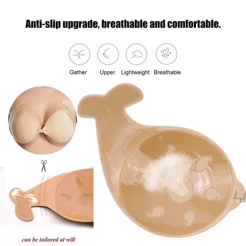 Женский силиконовый невидимый бюстгальтер с эффектом пуш-ап, с изображением дельфина, подтягивающий грудь бюстгальтер с ленточными наклейками, клейкие бюстгальтеры для женщин