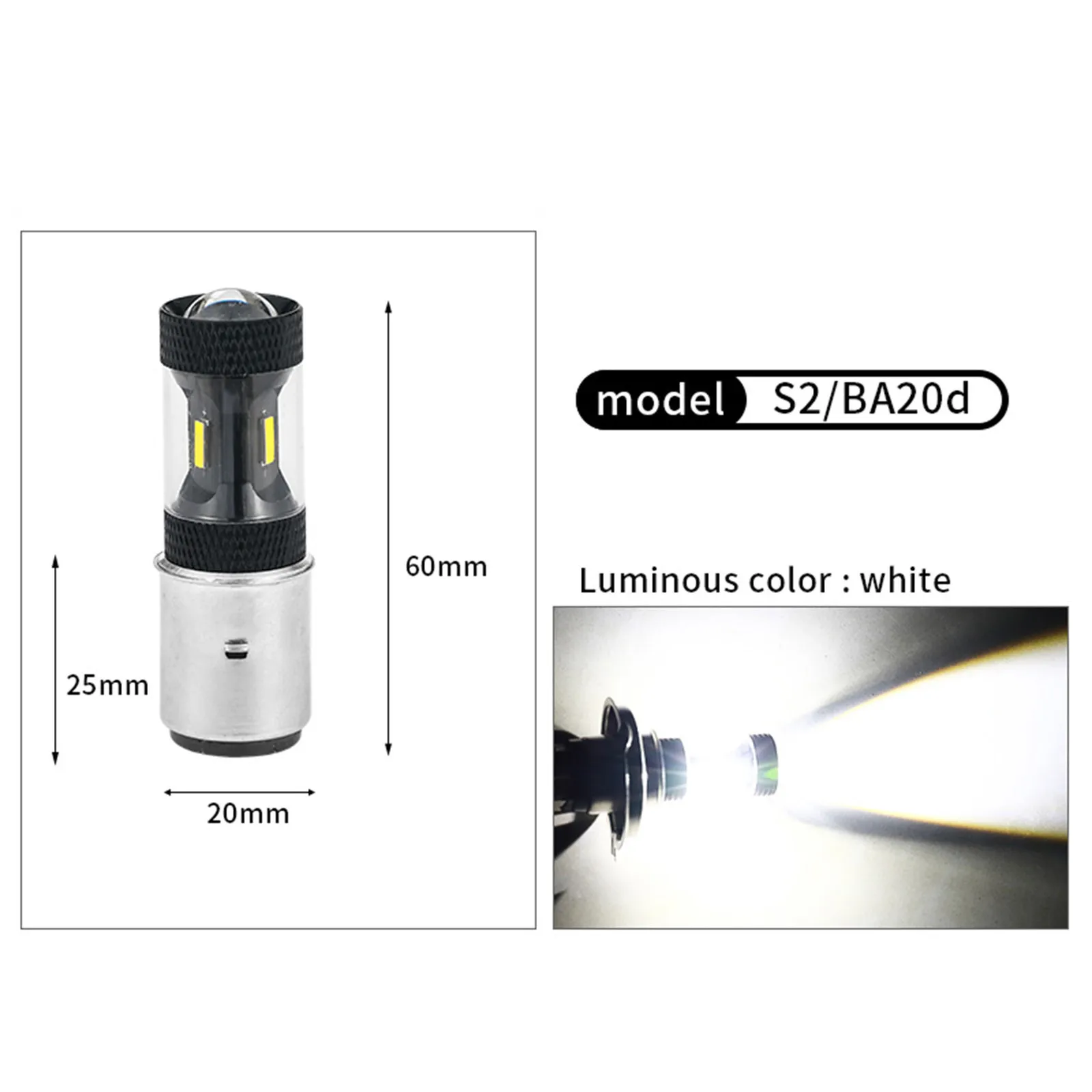 [Высокая яркость, энергосбережение] 4 последних варианта высокой мощностиCRE EЧипы встроены с обеих сторон H6 светодиодный. Каждый светодиодный светильник выдает до 2600 люменов на ксеноновый белый светильник. Он на 220% ярче галогенных ламп и потребляет всего 50% мощности. Идеальная замена галогенных ламп H6.