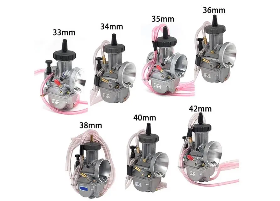 32 мм подходит для двигателя 250cc до 300cc 33 мм подходит для двигателя 250cc до 300cc 34 мм подходит для двигателя 250cc до 350cc 35 мм подходит для двигателя 250cc до 350cc 36 мм подходит для двигателя от 300cc до 400cc 38 мм подходит для двигателя 350cc до 450cc 40 мм подходит для двигателя 400cc до 500cc 42 мм подходит для двигателя 450cc до 650cc