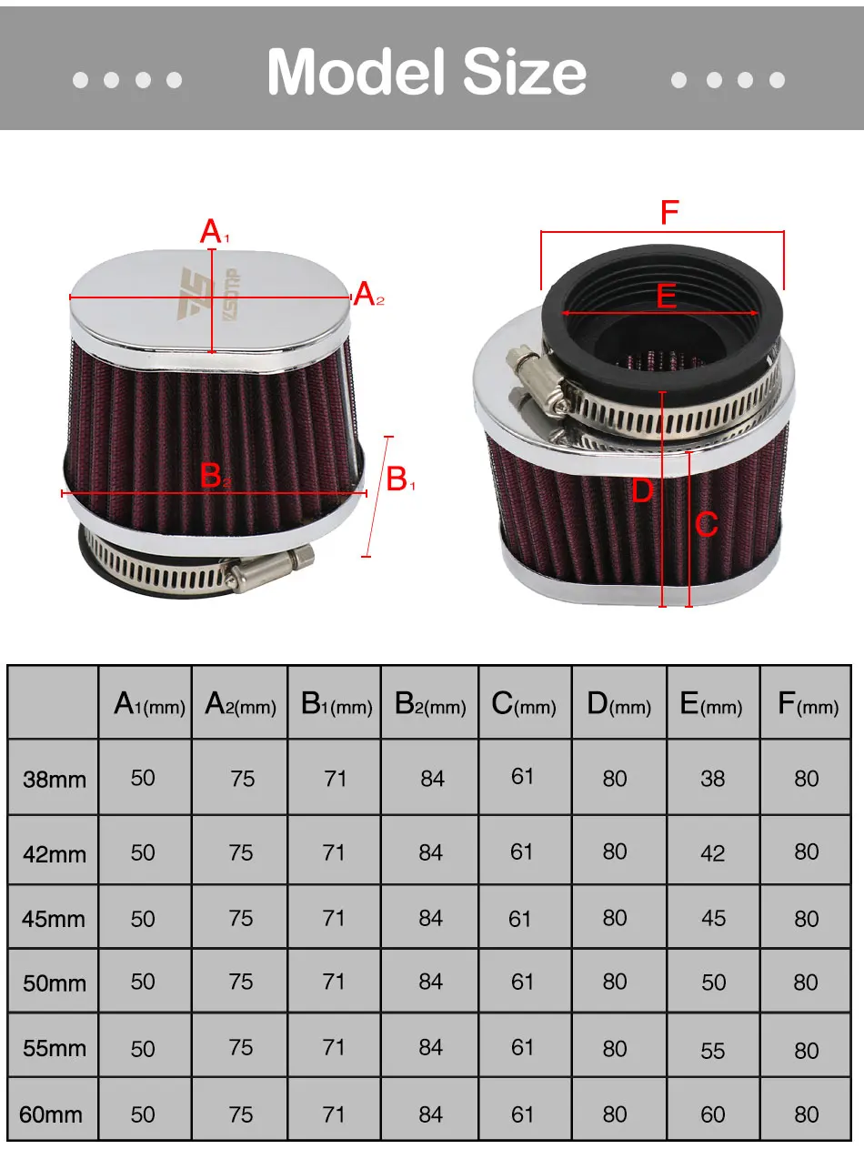 ZSDTRP мотоциклетный карбюратор воздушный фильтр воздухоочиститель 38 мм 42 мм 45 мм 50 мм 55 мм 60 мм для PWK 21 мм 24 мм 26 мм 28 мм 30 мм 32 мм 34 мм PE28 PE30 Carb