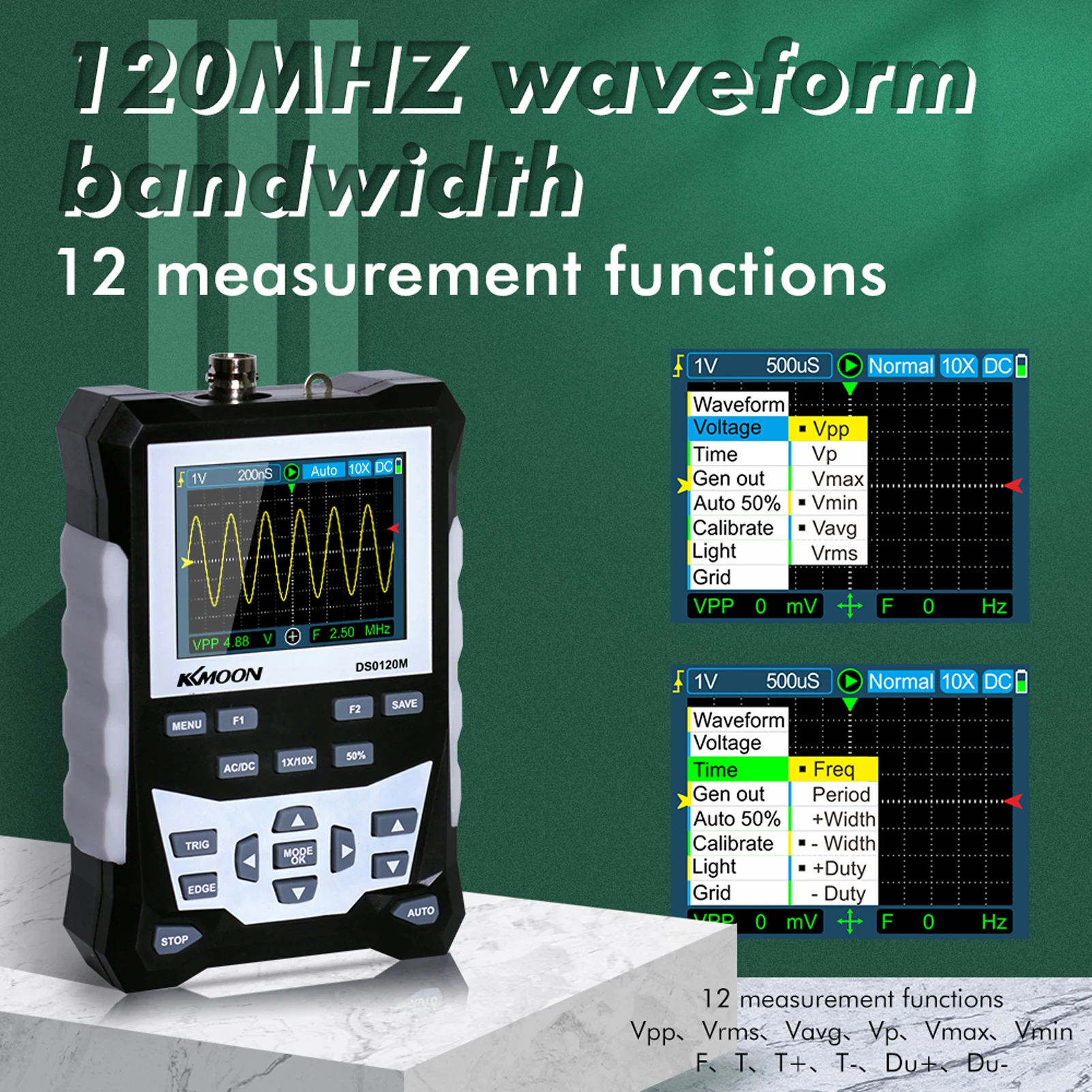 This KKmoon professional oscilloscope has 320 * 240 LCD screen, so you can see the data more clearly, the backlight id adjustable, you can change it in different occasion, it also has 4 speeds of square wa-ve signal output function, and in small size, so you can take it to anywhere you want to use it. Come on and try it.