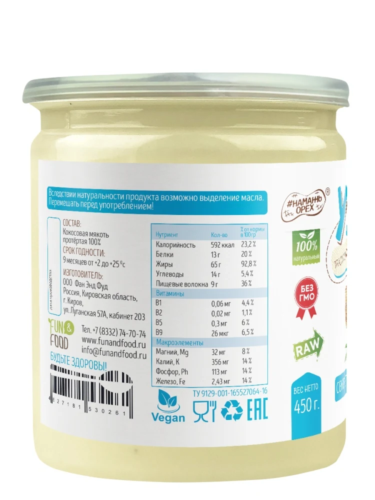 содержит только натуральную мякоть кокоса, измельченную до состояния