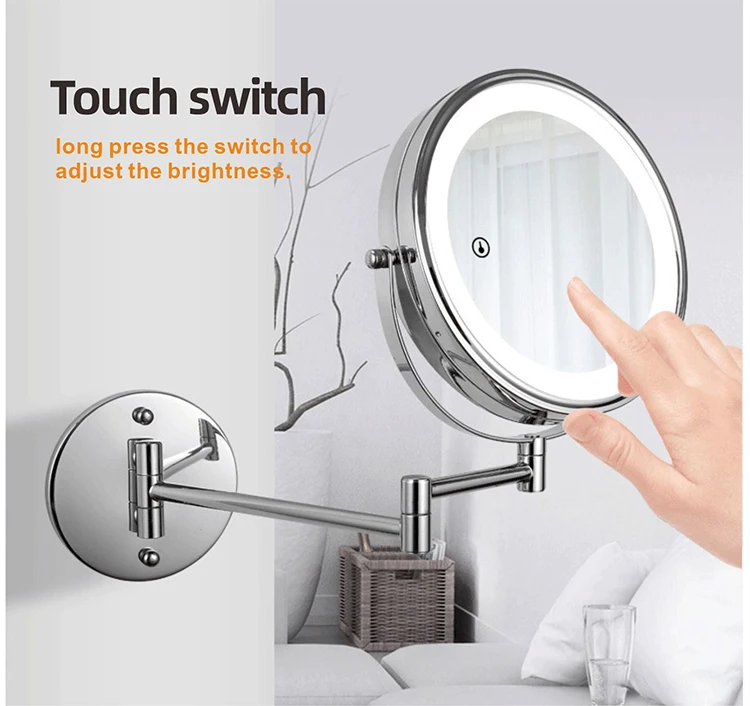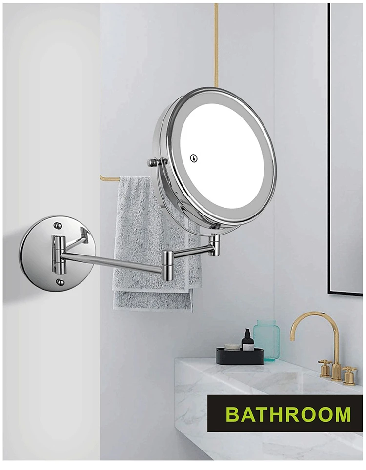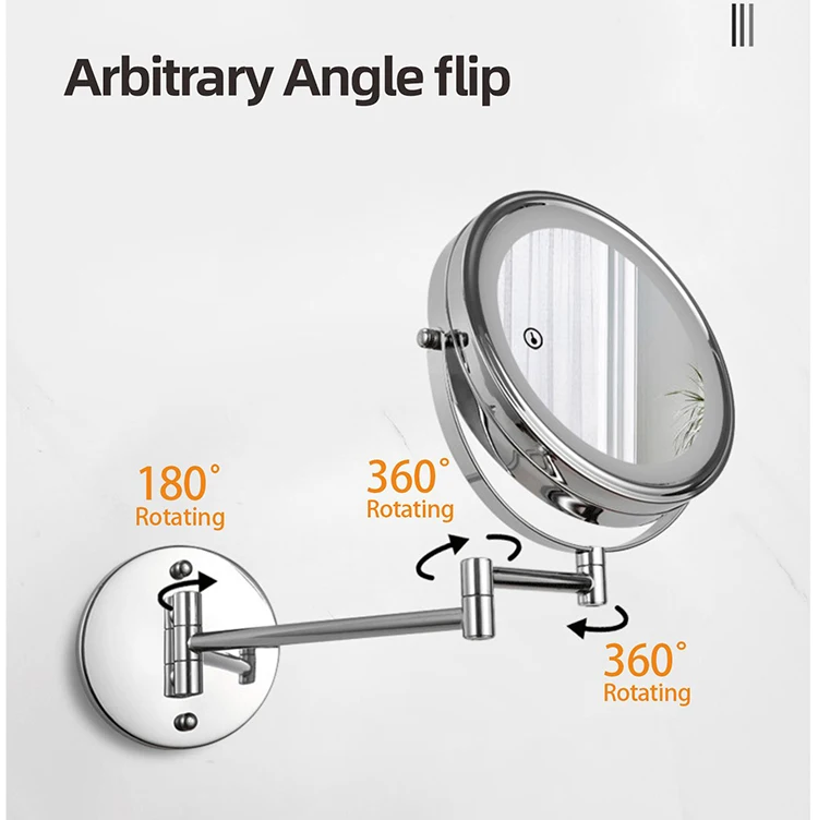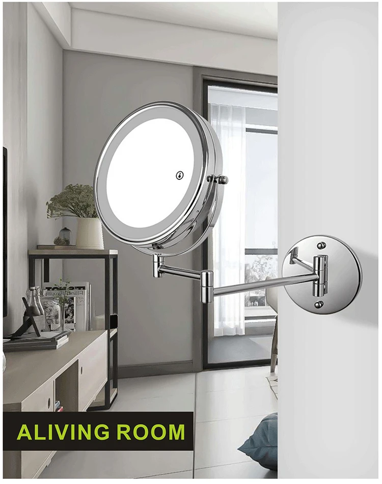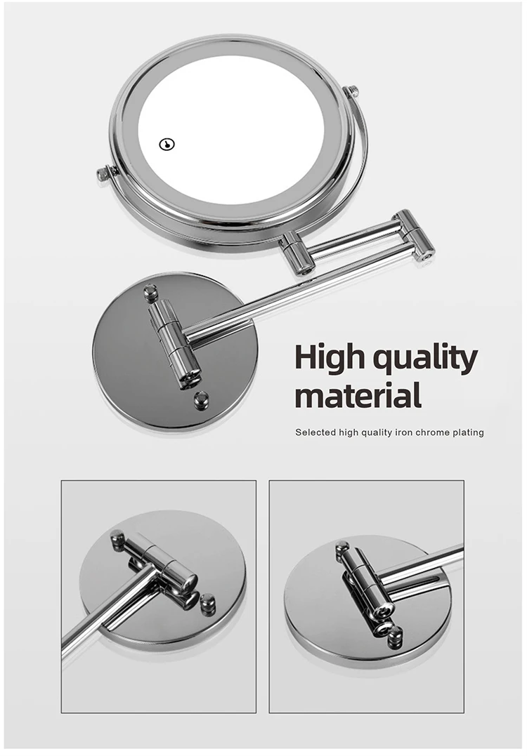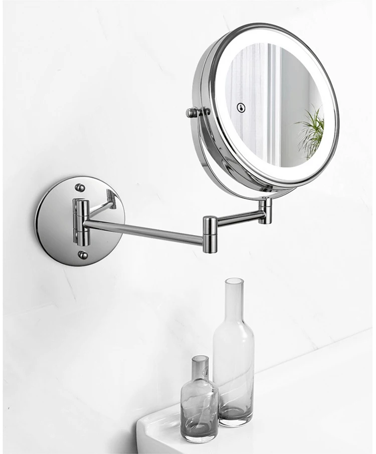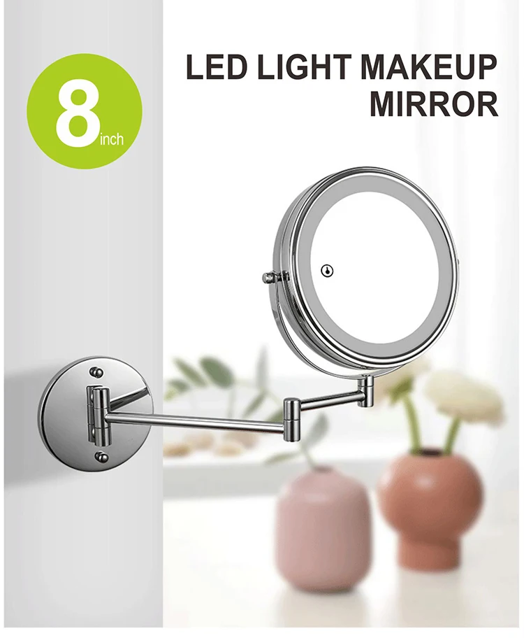 8 дюймов настенное зеркало для макияжа 3X / 5X Увеличительное двухстороннее складное зеркало для ванной комнаты, Смарт косметическое зеркало