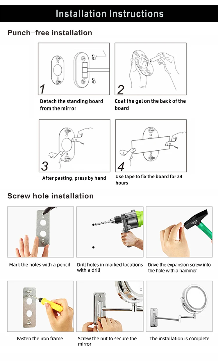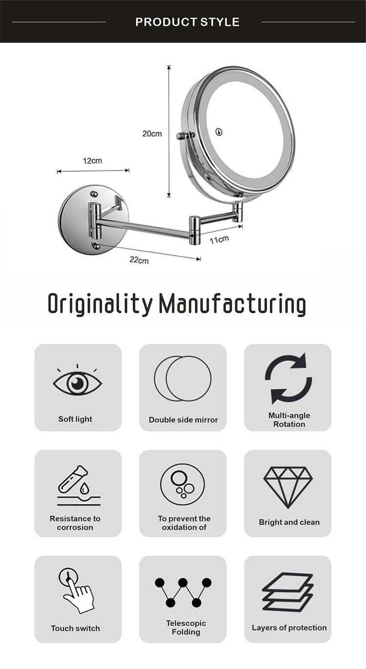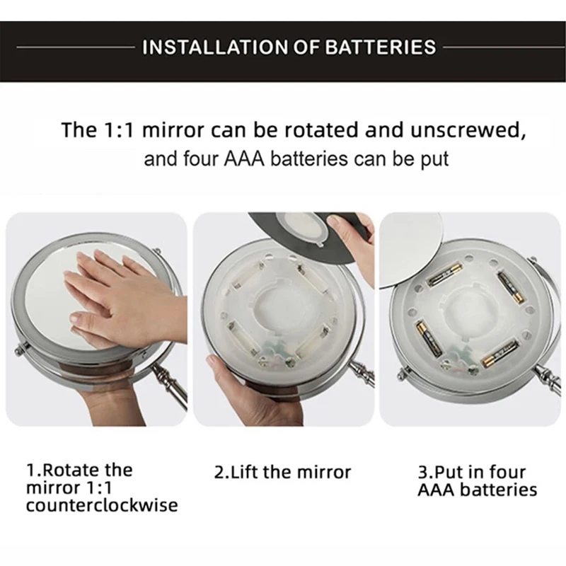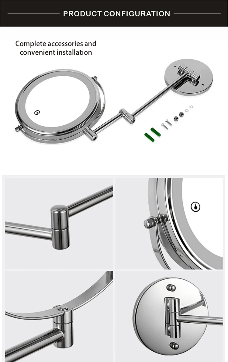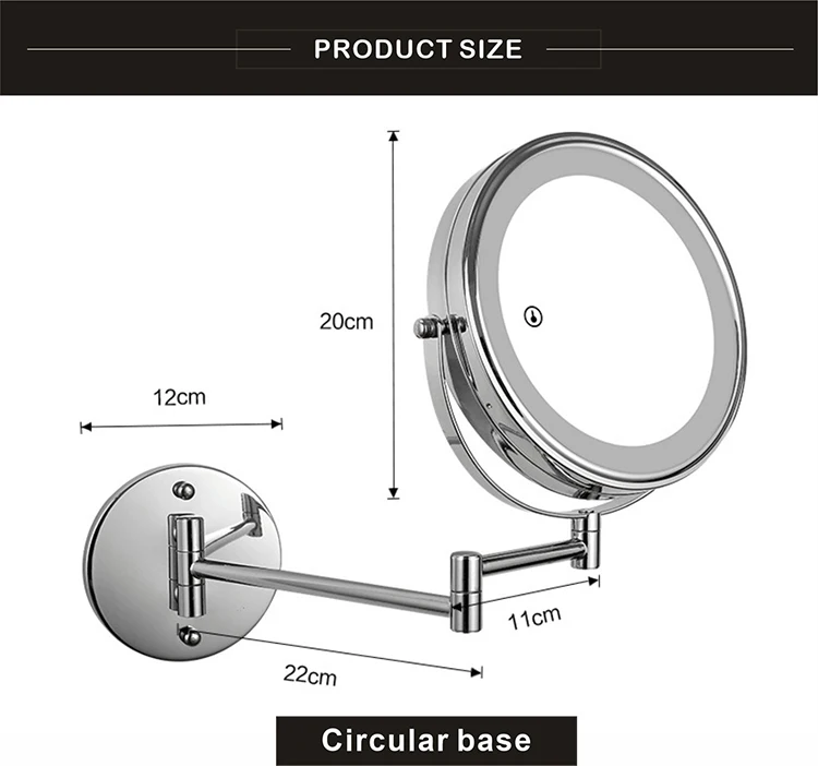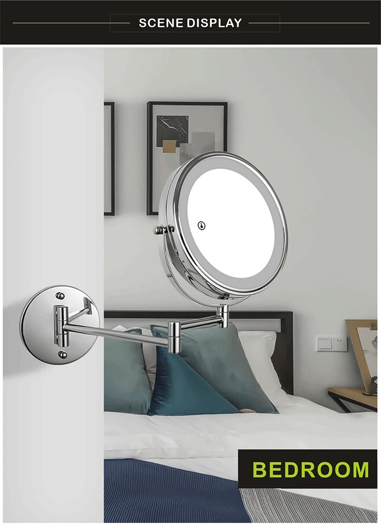 8 дюймов настенное зеркало для макияжа 3X / 5X Увеличительное двухстороннее складное зеркало для ванной комнаты, Смарт косметическое зеркало