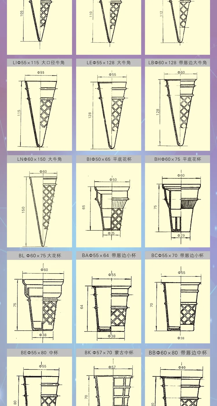 7. Низкий уровень шума, высокая емкость с низкой мощностью. Вырезание слов мороженое конус вафельная бисквитная машина