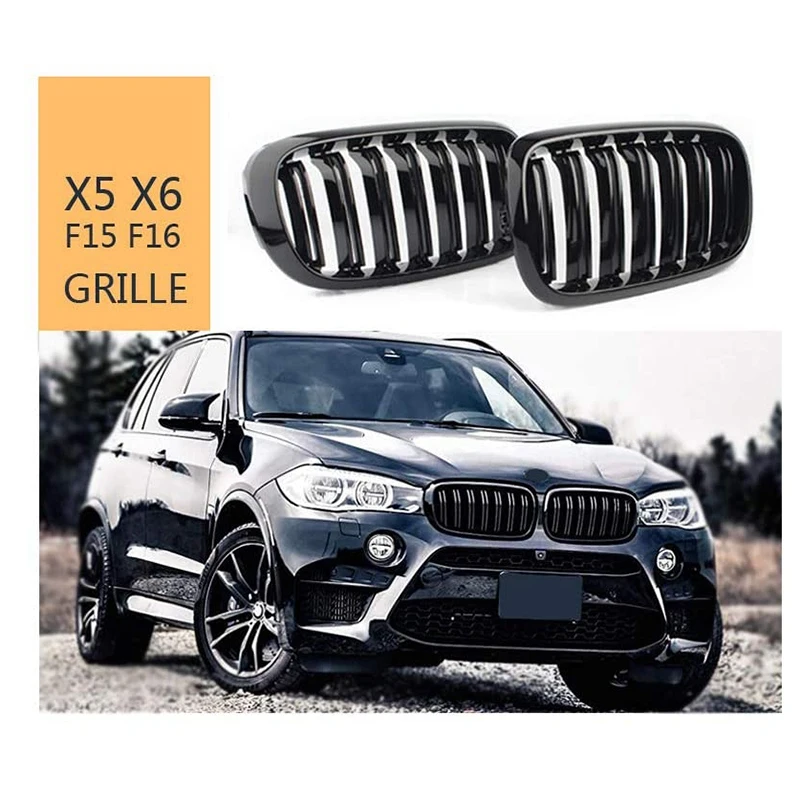 Передняя носочная решетка двойная планка Спортивная решетка для-BMW X5 F15 X6 F16 X5M F85 X6M F86 2013-2019 (глянцевый черный)