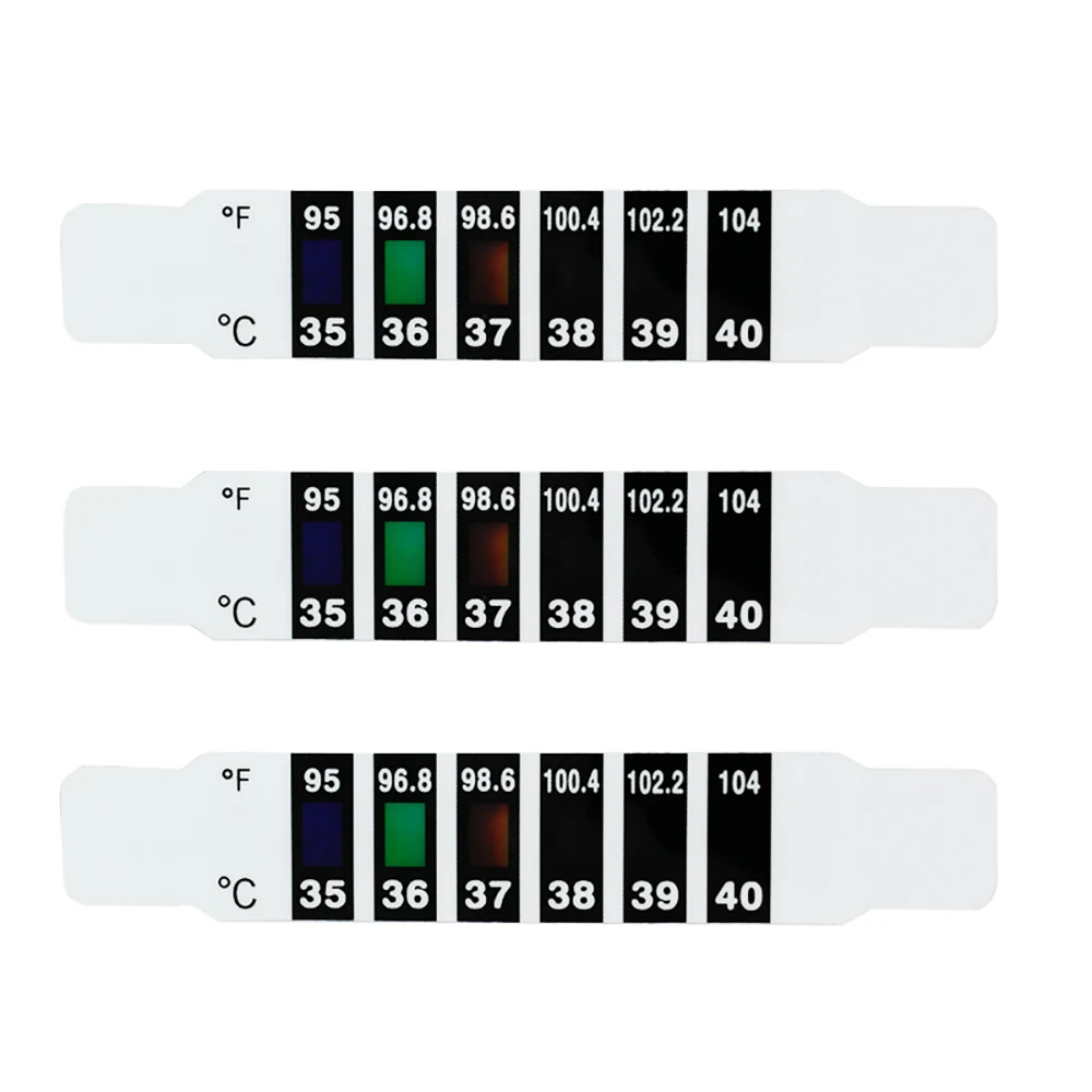 Стикер температуры лба является гибким и прочным. Легко носить с собой и хранить в карманах или небольших сумках. Это идеальные Термометры для экстренной лихорадки в вашем доме, офисе и путешествиях.