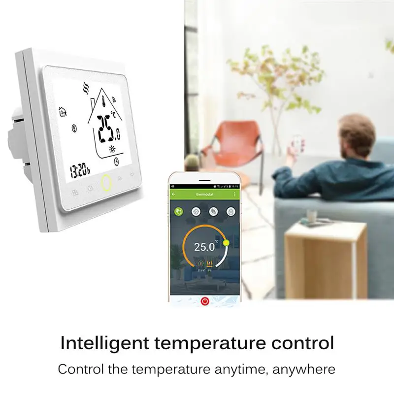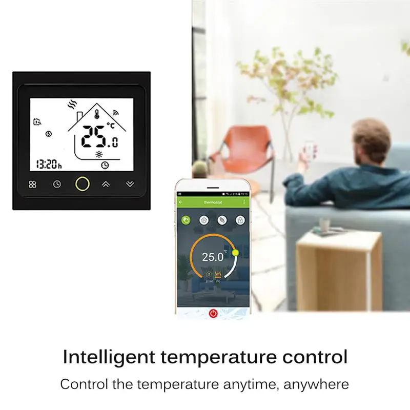 Интеллектуальный контроль температуры, термостат автоматически принимает контроль температуры через график, запрограммированный приложением на устройстве, что очень и удобно.