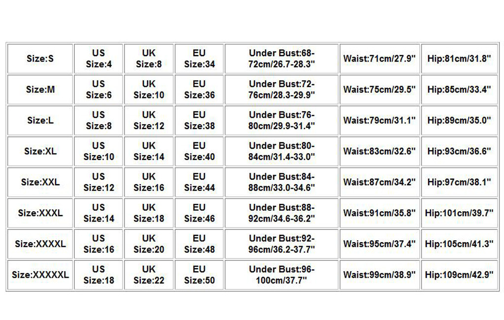 Размеры | Размер США | Размер Великобритании | Размер ЕС | Под грудью | Талия | Бедра |