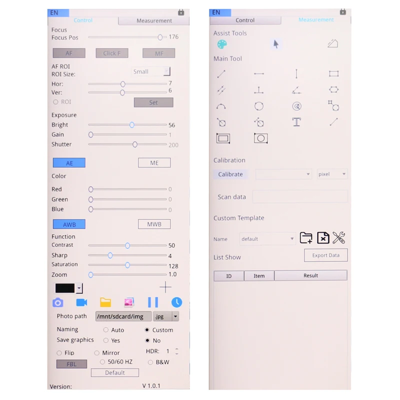 Характеристика:Высокоскоростная камера 1080P FULL HD 60FPSМЕНЮ дизайна пользовательского интерфейса, легко управлять мышьюАвтофокус, при наблюдении объектов различной высоты (максимум 10 см), вам не нужно регулировать рабочее расстояние объективаПри регулировке увеличения объектива вам не нужно регулировать рабочее расстояние объективаКогда вы регулируете рабочее расстояние объектива (макс. 10 см), вам не нужно регулировать увеличение объектива, камера может АвтофокусСпецификация: Сенсор: SONYДатчик изображения: Цвет CMOSРазмер пикселя: 1/2.8 〞Меню: полностью цифровой дизайн пользовательского интерфейсаСпособ работы: мышьИнтерфейс объектива: C/CS-typeМощность постоянного тока: DC12VМетод вывода: HDMIБаланс белого: Авто/Руководство/Управление одним нажатиемЭкспозиция: Автоматическая/ручнаяЧастота отображения кадров: 1080P @ 60 кадров в секундуМетод сканирования: линия по линии сканированияЗатвора Скорость: 1/50s(1/а-ля 60ые) ~ 1/10000sРабочая температура: 0 ℃ ~ 50 ℃Увеличение/увеличение: ПоддержкаФункция сохранения: Поддержка u-диска (опционально) 1. Перед подключением источника питания Подключите мышь к камере.2. В режиме AF программа автоматически настроит фокус, чтобы обеспечить четкое изображение; Переключение в режим «нажмите F», он будет блокировать фокус после того, как система осуществит автофокус на требуемом изображении; даже если изображение размыто, с блокировкой фокуса, оно не вызовет Автофокус снова; Когда «MF» (ручной фокус) установлен, MF можно отрегулировать.3. Если Автофокус не может работать при особых обстоятельствах (например, g. Гладкая отражающая поверхность). Переместите рамку фокуса к объектам с подробностями, измените режим «нажмите F» для выполнения однократного управления автофокусом или переключитесь в режим «MF» для ручной работы фокуса.4. Необходимо подождать некоторое время, когда будет выбрано «Сохранить изображение», значки будут отображаться в центре экрана и будут автоматически сохранены на U диск в формате jpg.5. При нажатии кнопки «Видео», чтобы начать запись, • Rec появится в правом нижнем углу экрана камеры. При повторном нажатии кнопки «Видео» Запись видео будет остановлена и автоматически сохранена на tf-карту с форматом H.2646. При сохранении изображения/видео папка и файлы будут называться соответственно по дате и времени.7. Когда вам нужно исправить задний фокус объектива, выберите «Мотор в середине», а затем Отрегулируйте механический задний фокус, чтобы сделать изображение чистым. C-MOUNT линзы: