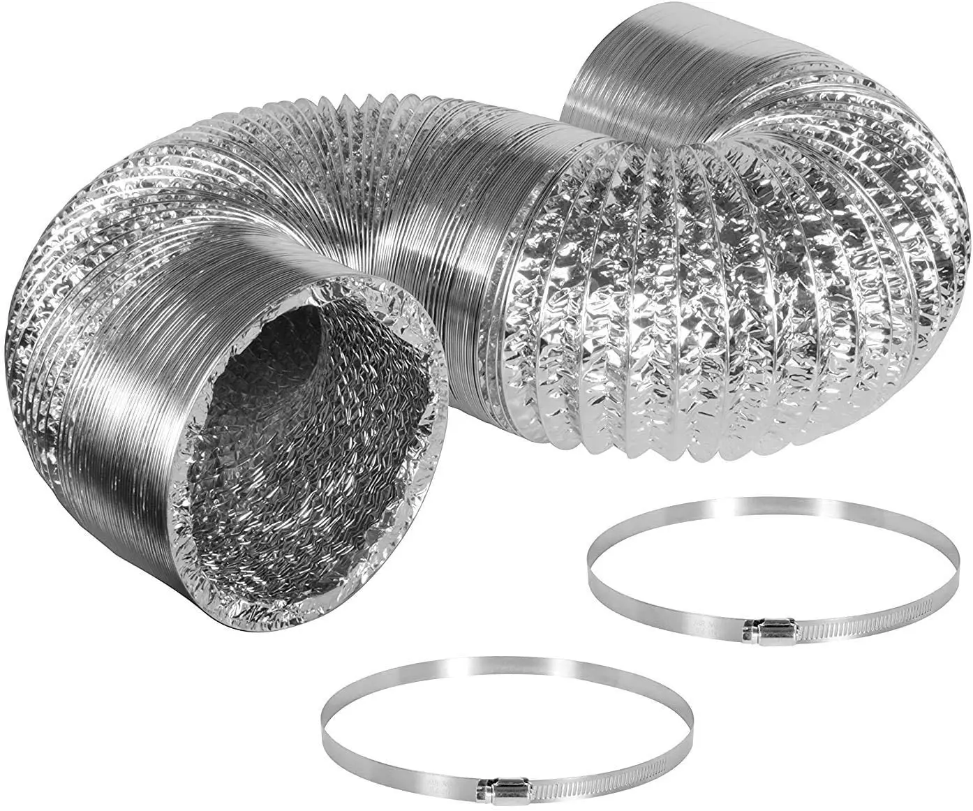 4-дюймовый 8-футовый гибкий воздуховод из алюминиевой фольги, вентиляционный шланг для вентиляции HVAC с 2 зажимами