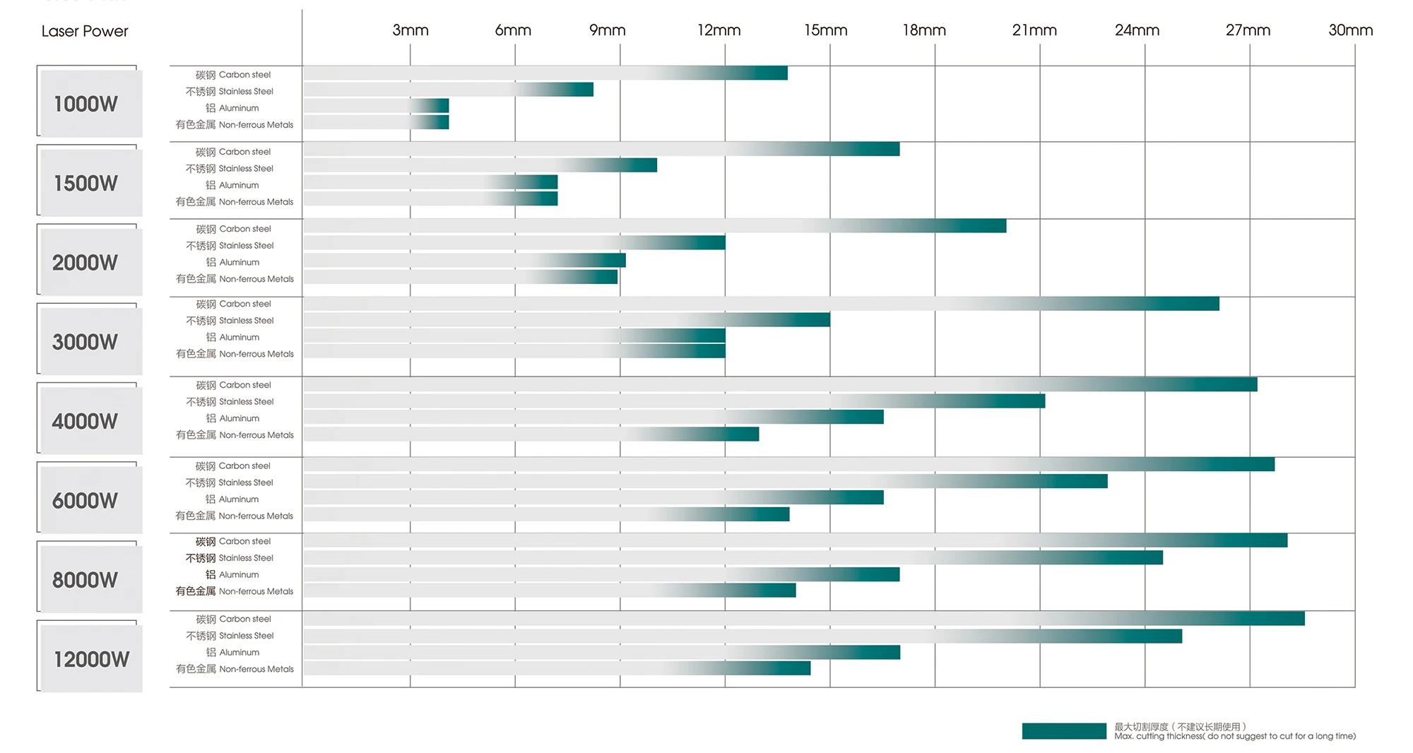 A:Различная мощность лазера из-за различной толщины лазерной резки, материалов и количества продукции.