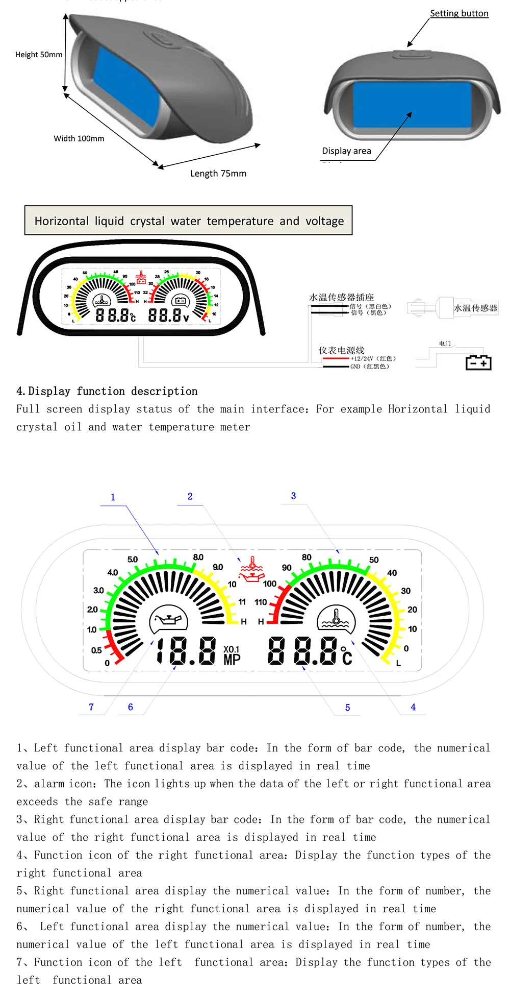 1х ЖК 2 в 1 Автомобильный датчик (датчик напряжения и температуры воды)