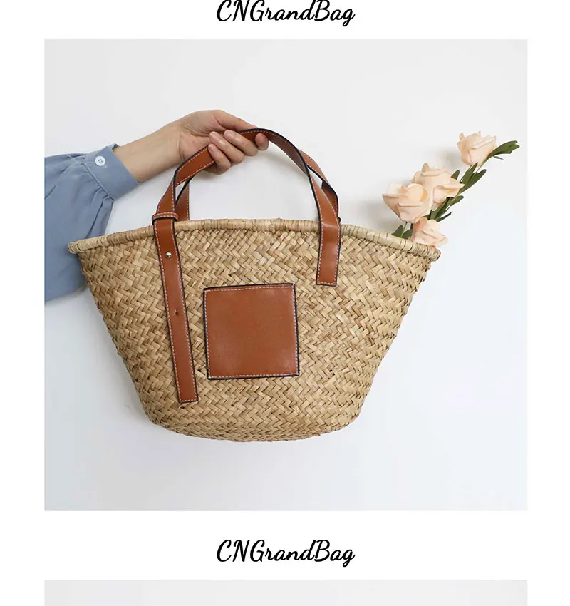 Модная дизайнерская женская пляжная сумка, высококачественные соломенные сумки с ручкой из полиуретана, женская летняя сумка из рафии, дорожная корзина, большая сумка