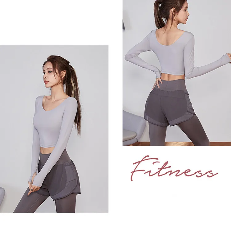 Материал: (верх: нейлон + спандекс, леггинсы: полиэстер + спандекс); Прочный, против деформации, дышащий, быстросохнущий, не просвечивающий, прокожный, эластичный. Стиль: с подкладкой на груди; Комплект для занятий фитнесом и йогой; Женская одежда. Особенности: высокая талия, впитывает влагу, милый, очаровательный, мини-комплекты, сексуальный, Товар: (спортивные Леггинсы с длинными рукавами, спортивные Леггинсы для йоги) Продажа: Прямая поставка. Сезон: весна, осень, лето Случаи: спорт, йога, тренировка, бег, упражнения, фитнес-бег, повседневная одежда, пляжная одежда, горячая весна, фотографии, повседневная одежда, одежда для дома, на открытом воздухе, Пешие прогулки, тренажерный зал, отдых, танцы и другие виды деятельности. Также подойдет практически к любому наряду. Идеально подходит под туники, шикарный топ и платье для любого вида.