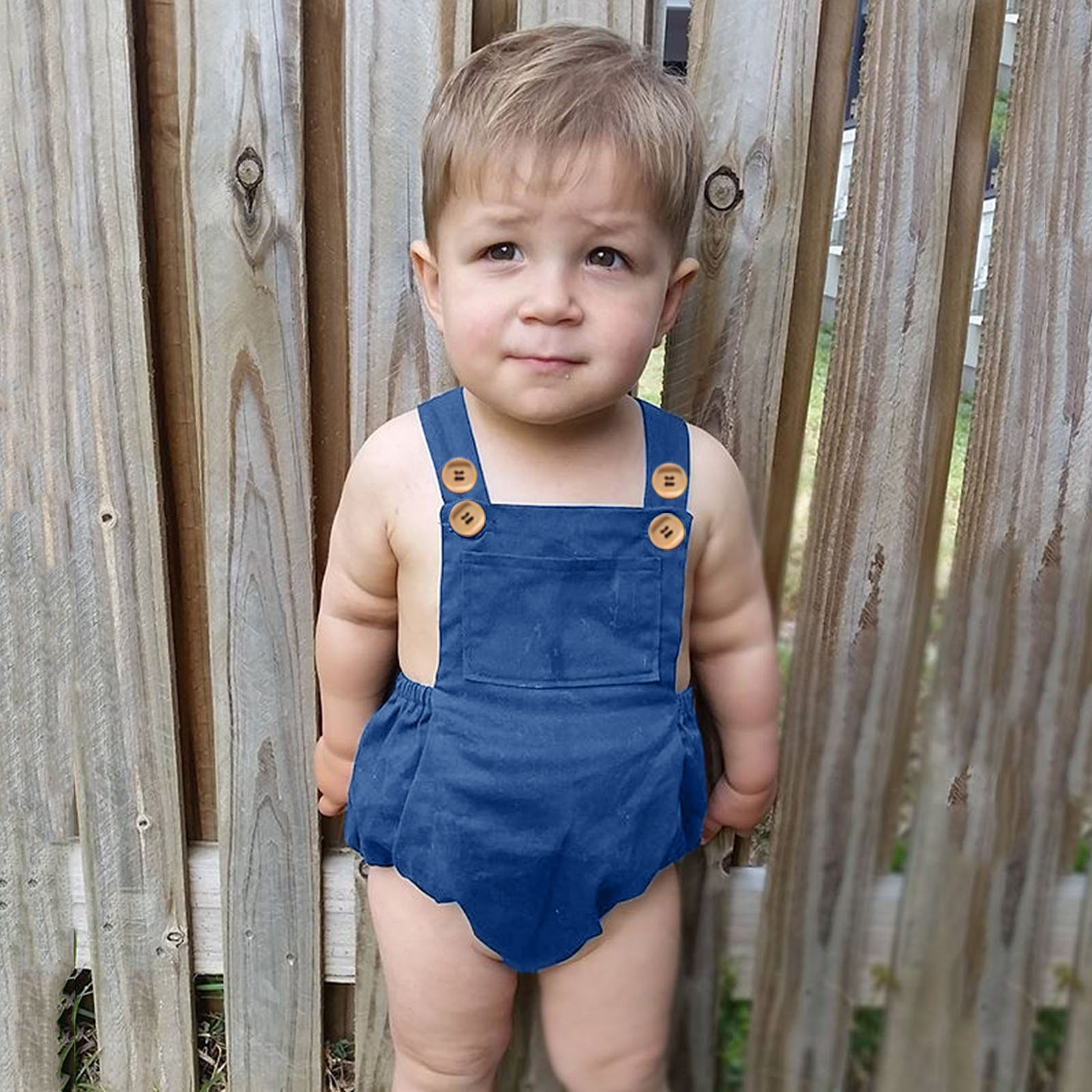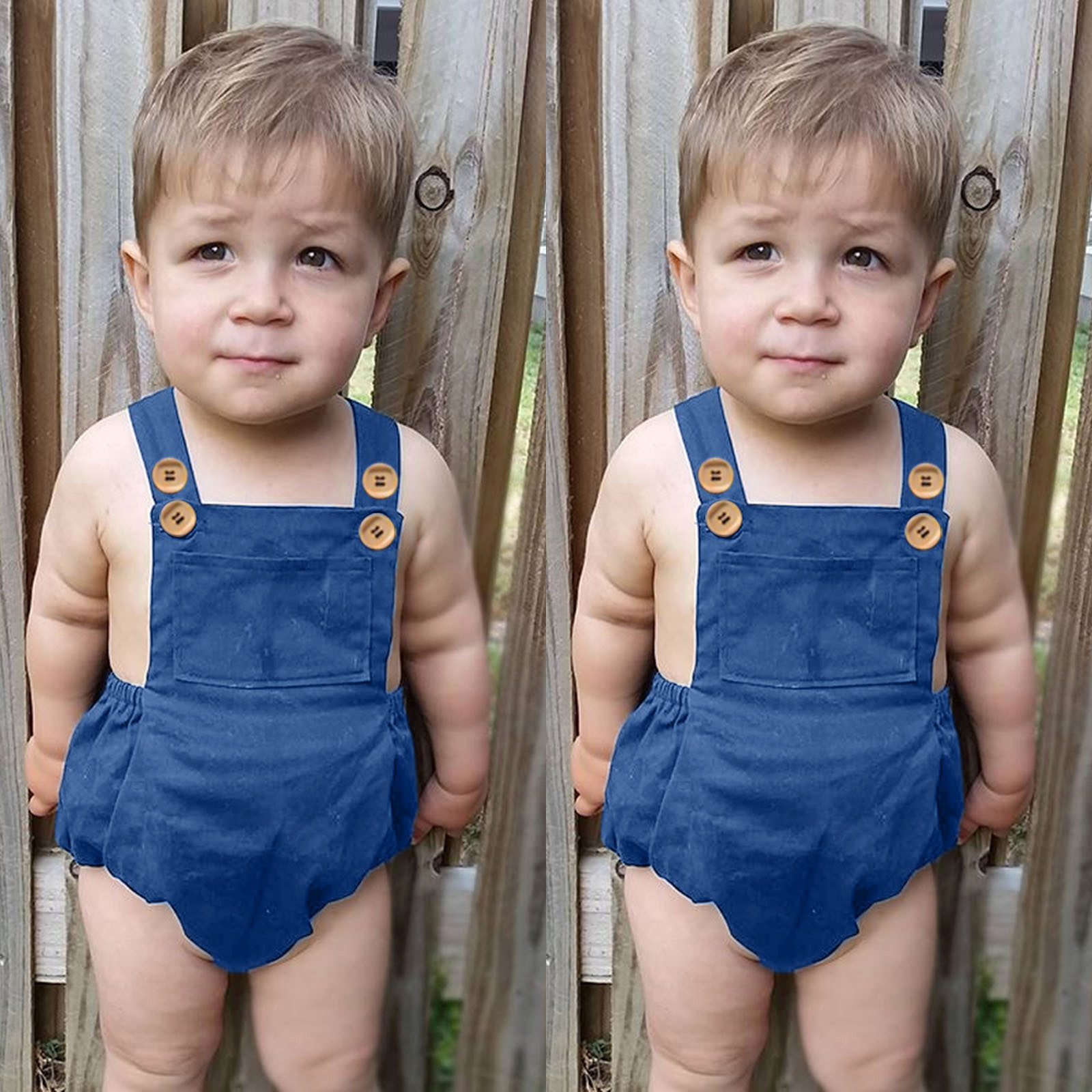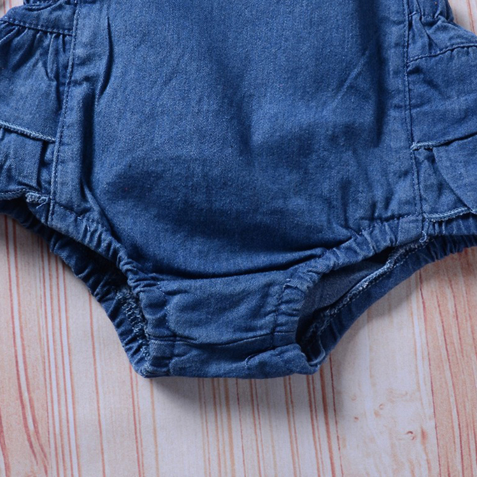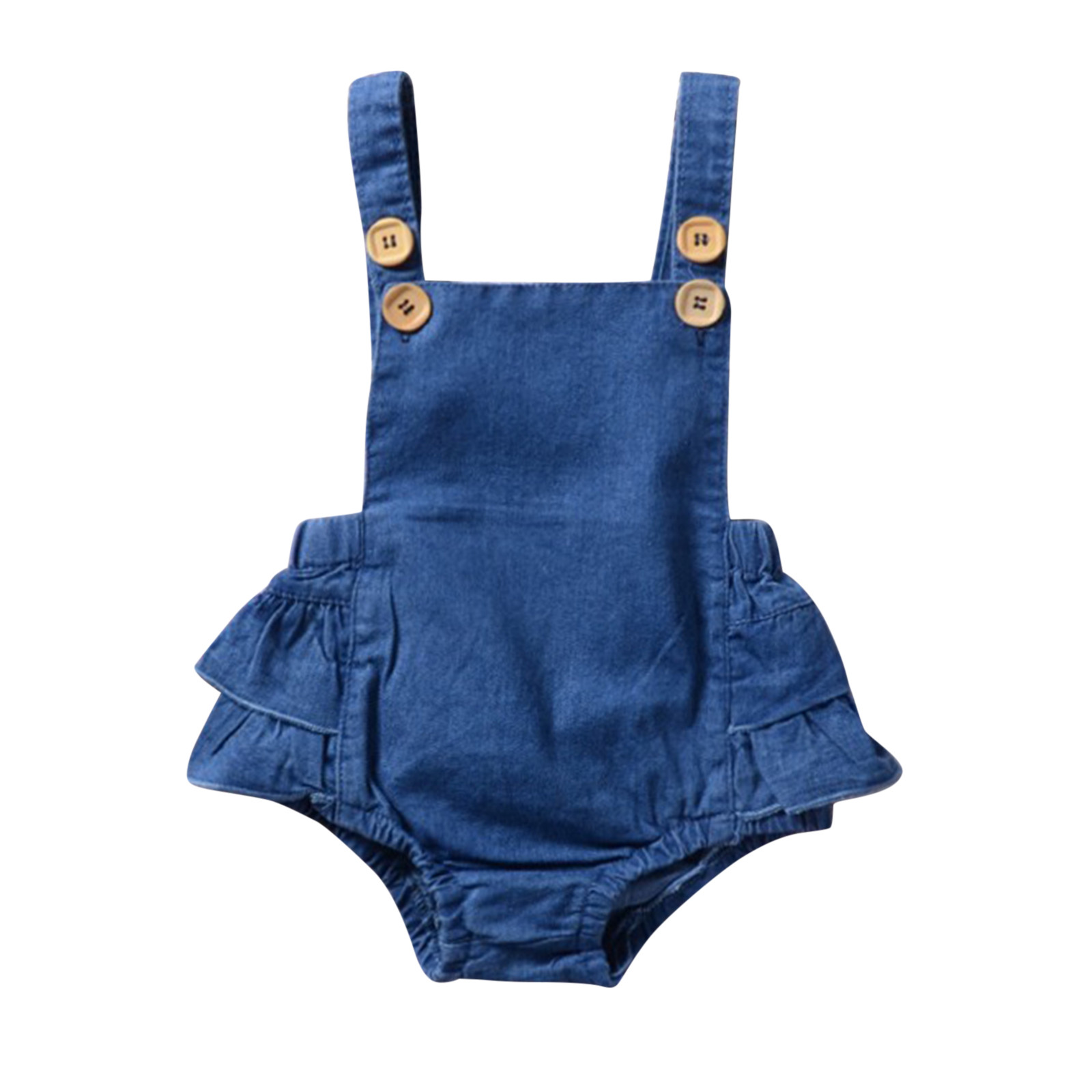 Летний джинсовый комбинезон с оборками для новорожденных девочек и мальчиков
