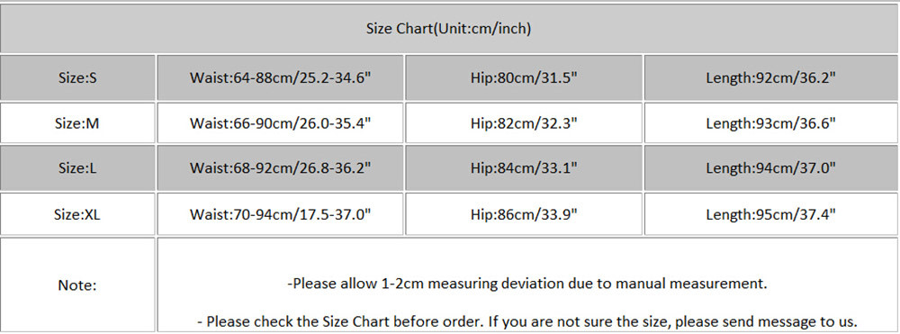 | Размер: S | Талия: 64-88 см/25,2-34,6 дюйма | Обхват бедер: 80 см/31,5 дюйма | Длина: 92 см/36,2" |