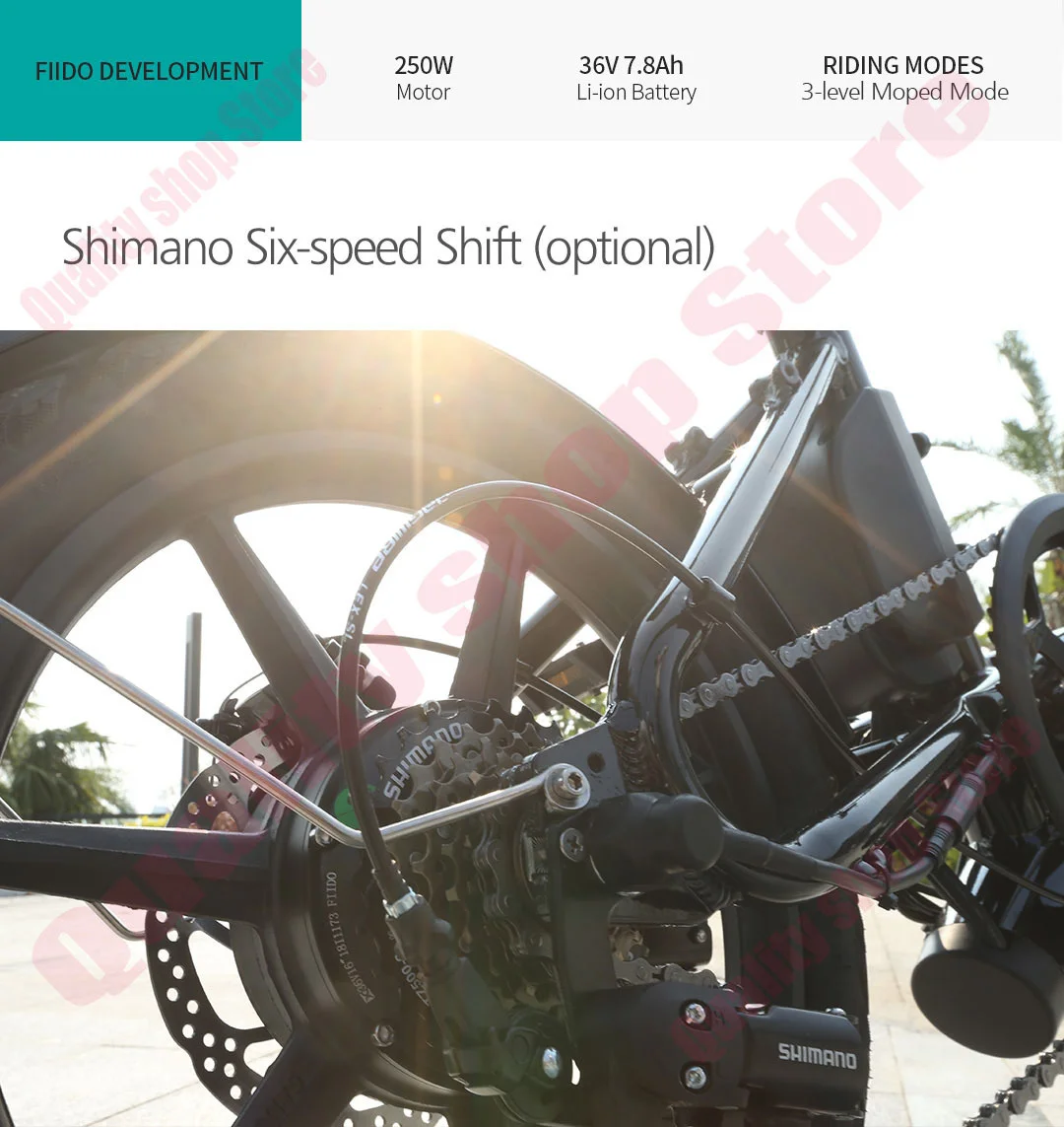 Переменная Скорость режим: Shimano 6-Скорость gear & 3 уровня регулировки в режиме мопеда