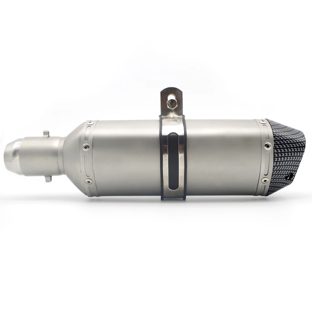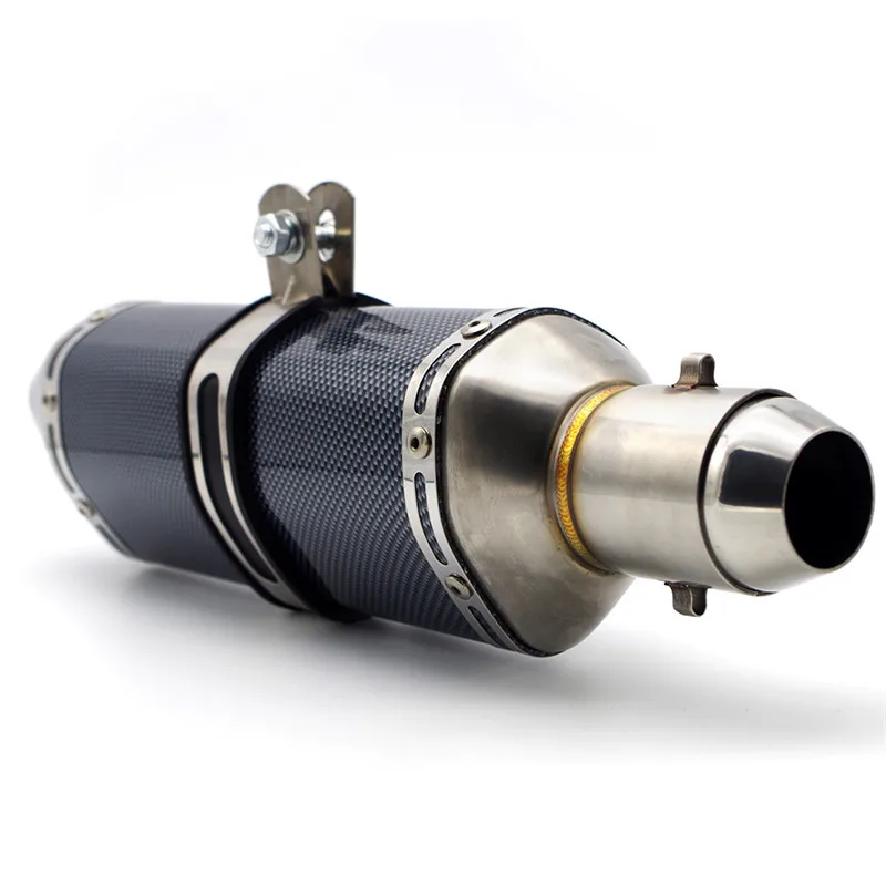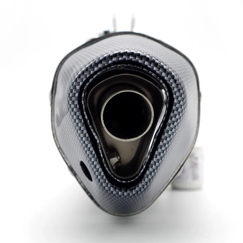 Это универсальная Модифицированная выхлопная труба мотоцикла, она подходит для моделей мотоциклов калибра 51 мм (с адаптером 36-51 мм). Этот продукт был изготовлен из высококачественной нержавеющей стали и Украшен узором из углеродного волокна. Отличное качество изготовления и хорошая текстура. Для очень немногих моделей установка может потребовать простой сварки и сборки.