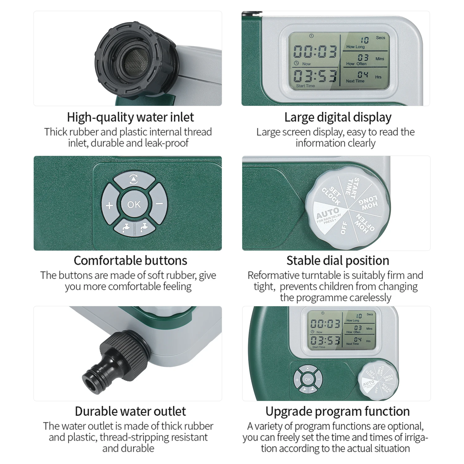 [Время полива] продолжительность полива может быть установлена от 1 минуты до 300 минут; Частоту полива можно устанавливать каждые 6 или 12 часов до каждых 7 дней.