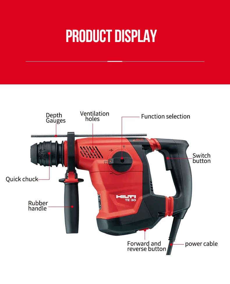 Электрическая Ударная дрель HILTI TE 30-AVR, многофункциональная Ударная дрель Eelectric Pick, энергосберегающая высокомощная плоская дрель, Сверление И самозатухание