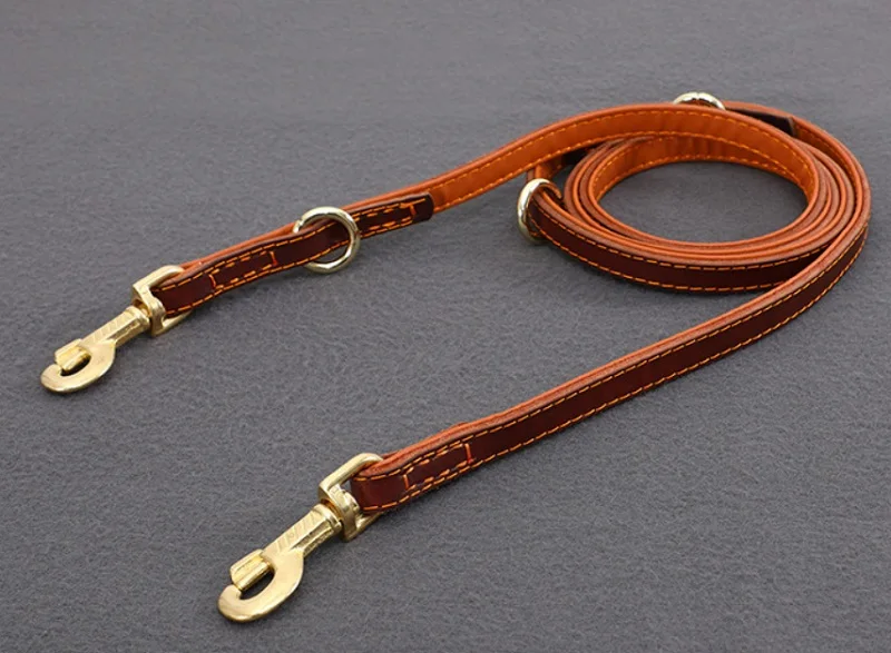 Поводок для двух собак из натуральной кожи, регулируемый, длинный, короткий, двойной