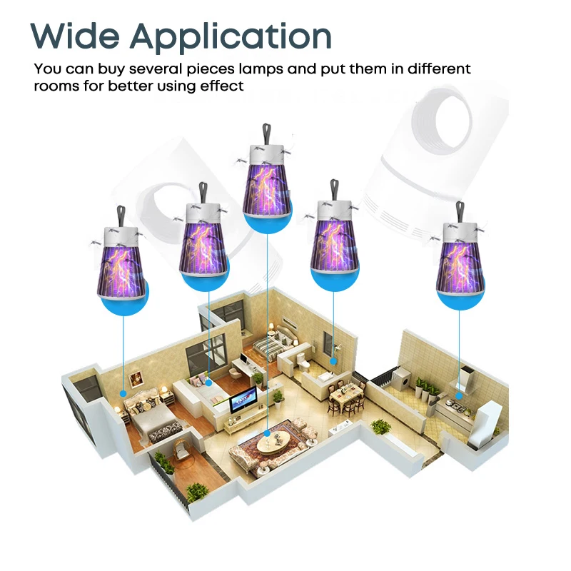 1. Эффективная защита: убийца комаров работает более эффективно без шума и может защитить вас и вашу семью от всех видов неприятных насекомых, фруктовых мух и комаров. При попадании солнечных лучей в ловушку от комаров москитная ловушка для помещений с высоким напряжением уничтожит насекомых в результате электрического удара инсектицида. Убийца комаров также может использоваться как ночной Светильник с низким энергопотреблением.