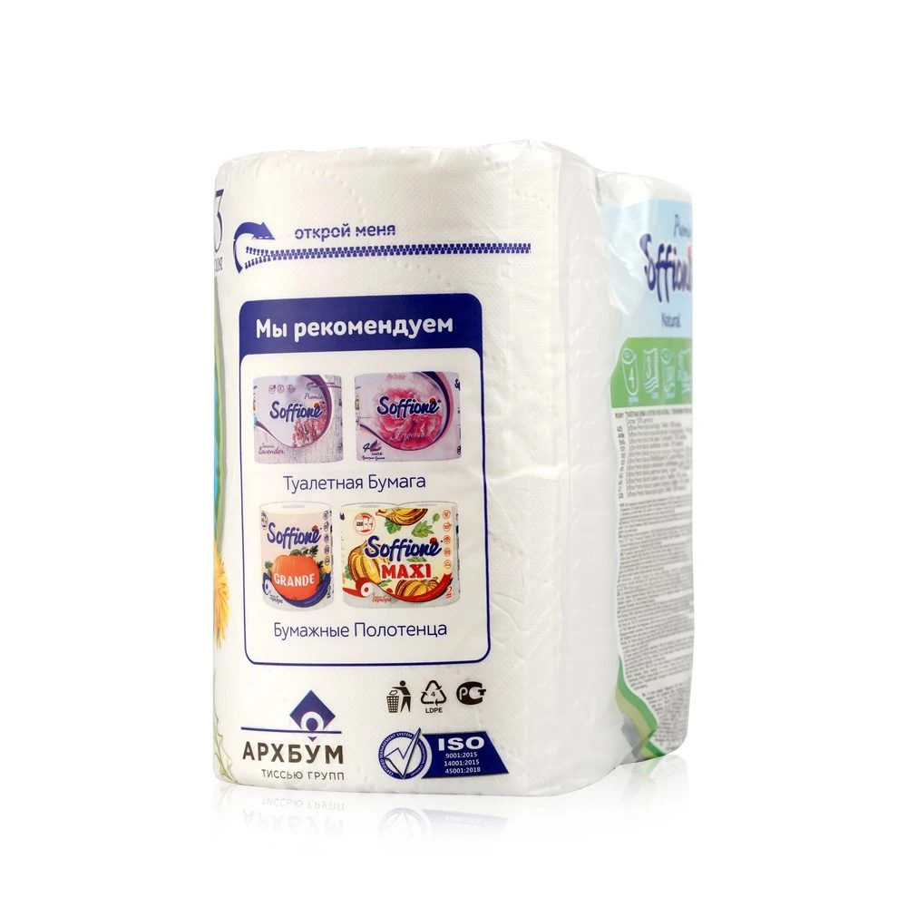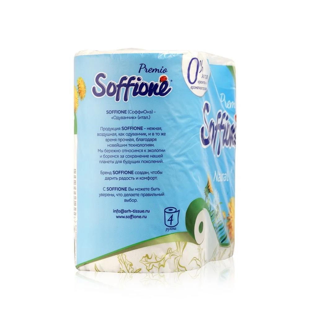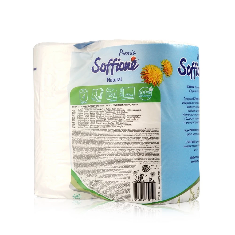 Трехслойная белая туалетная бумага премиум качества Soffione Premio Natural произведена без использования красителей и ароматизаторов.