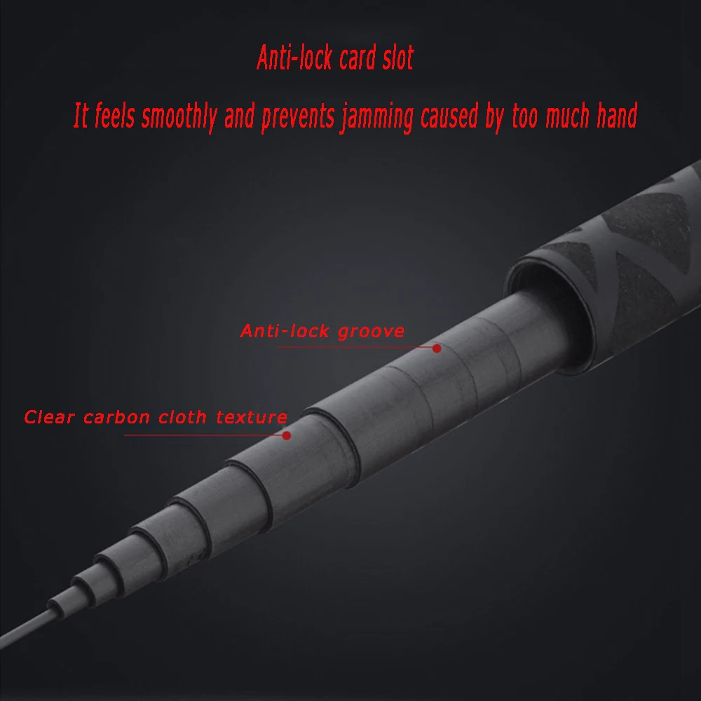 Длина этого стержня 77 см. УГЛЕРОДНЫЙ стержень имеет очень хорошую твердость и прочность талии. Подходит для дикой рыбалки и отдыха. Рыба может быть большой и маленькой. Длина 2,7 м, 3,6 м, 3,9 м, 4,5 м, 5,4 м, 6,3 м, 7,2 м, 8,0 м, 9,0 м, 10,0 м.