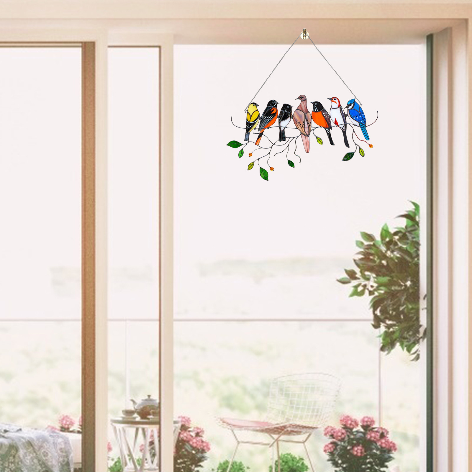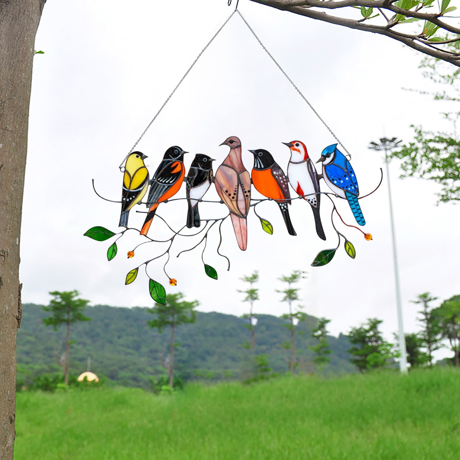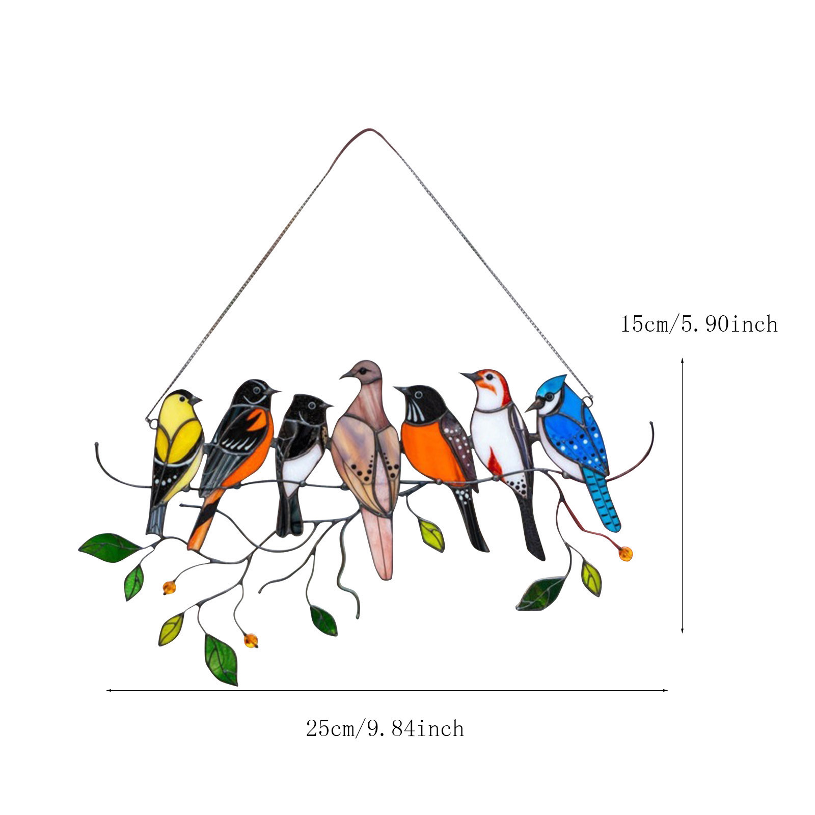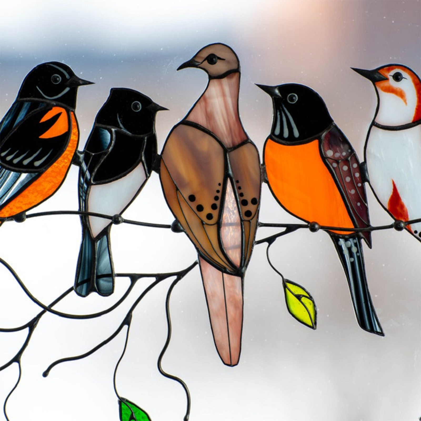 Разноцветные птицы на проволоке высокой витражной панели окна, птица серии Ornamen