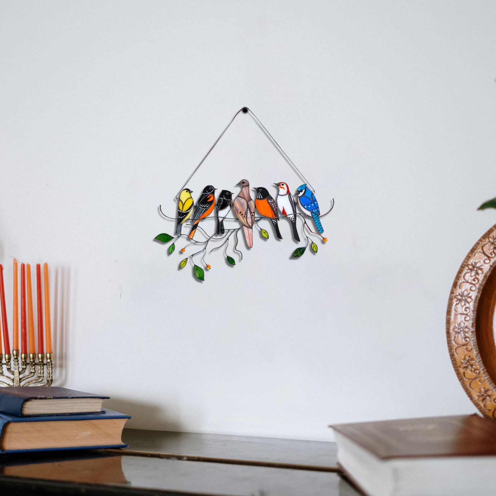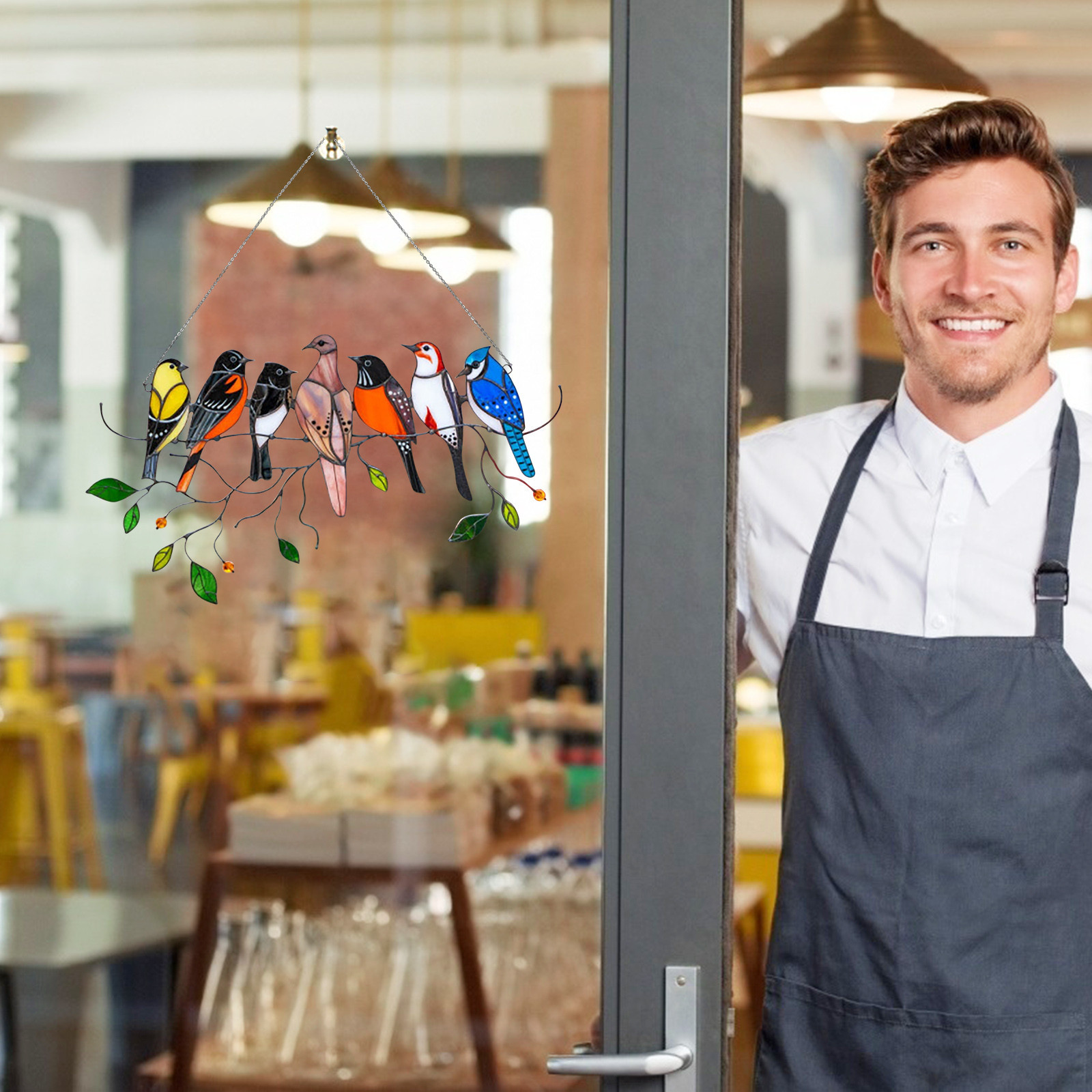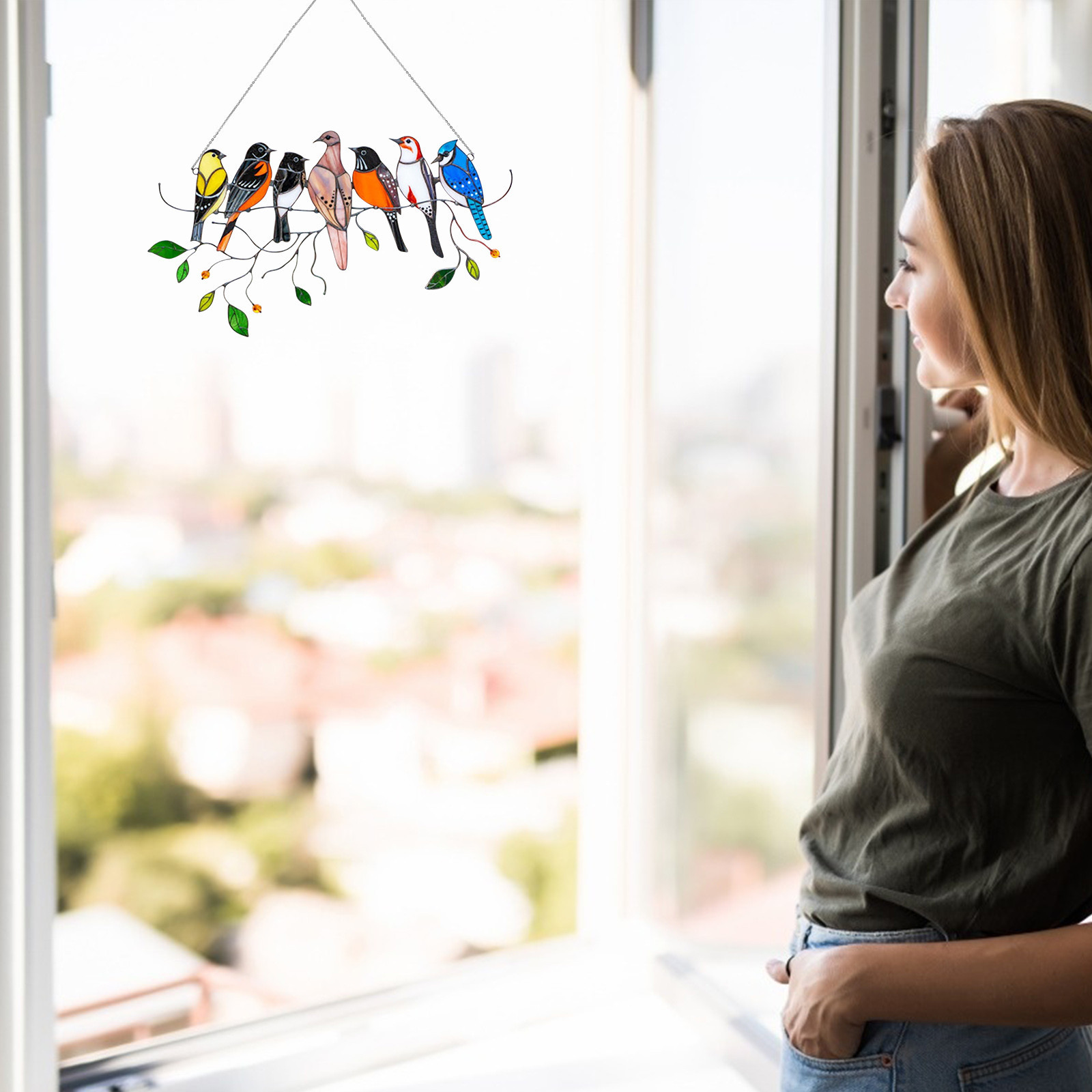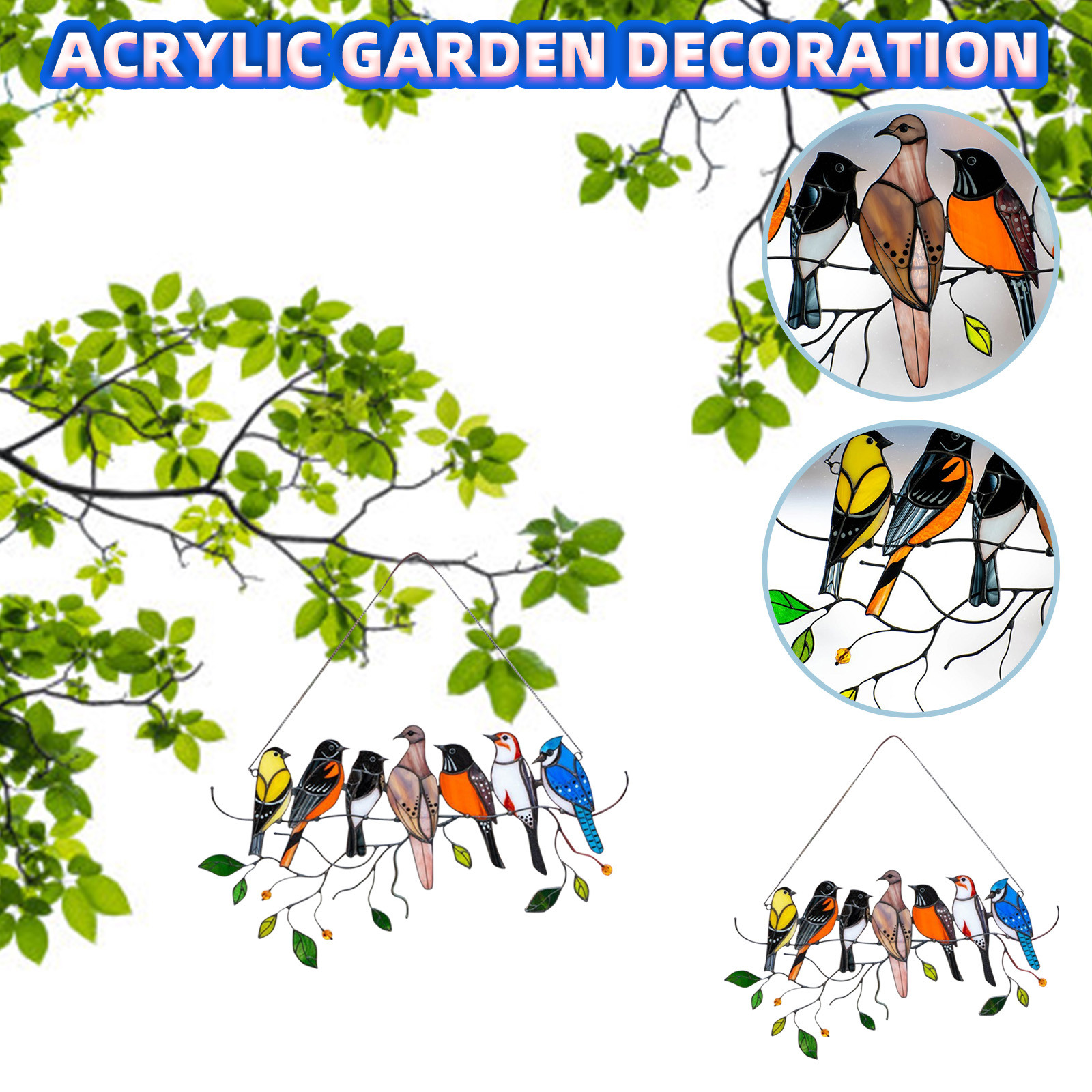 Разноцветные птицы на проволоке высокой витражной панели окна, птица серии Ornamen