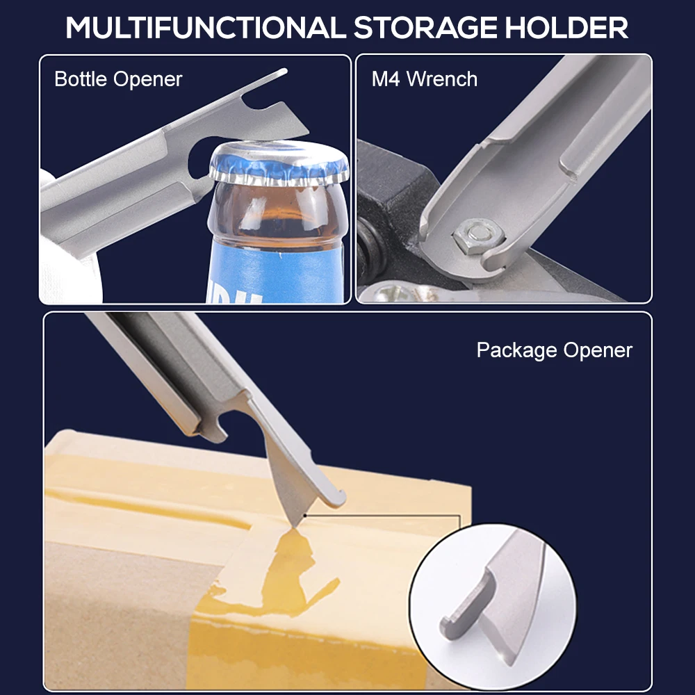 Многофункциональный держатель для хранения столовых приборов также может использоваться в качестве открывателя для бутылок, ключа M4 и открывателя для посылка.