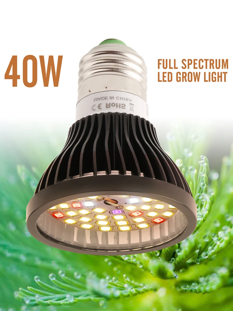 40 Вт Led Grow Светильник E27 полный спектр Led Grow лампа теплый белый черный корпус растительная лампа gro светильник ing для овощей Цветок Фрукты растение