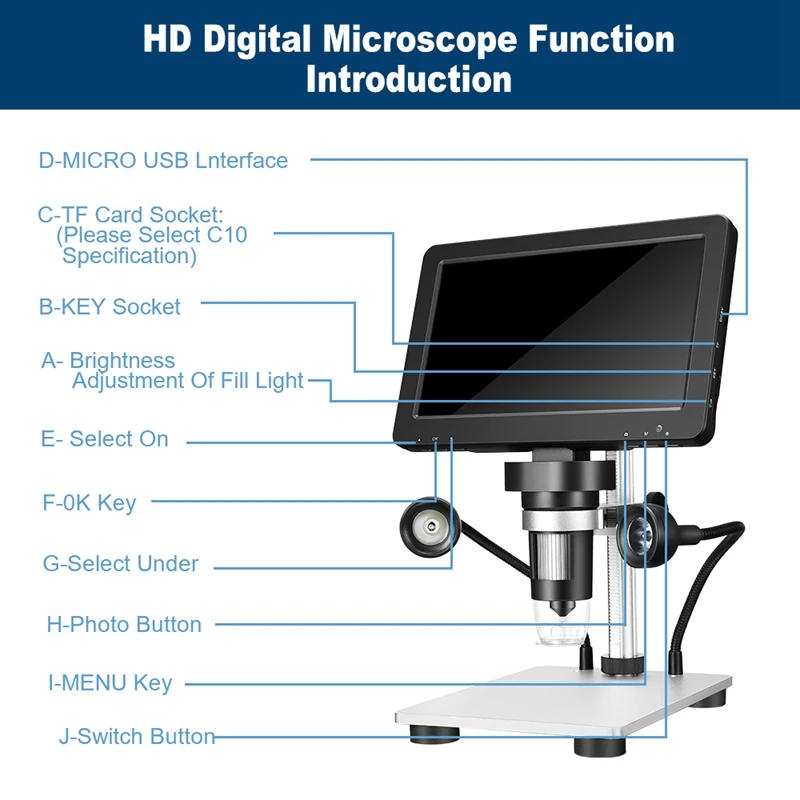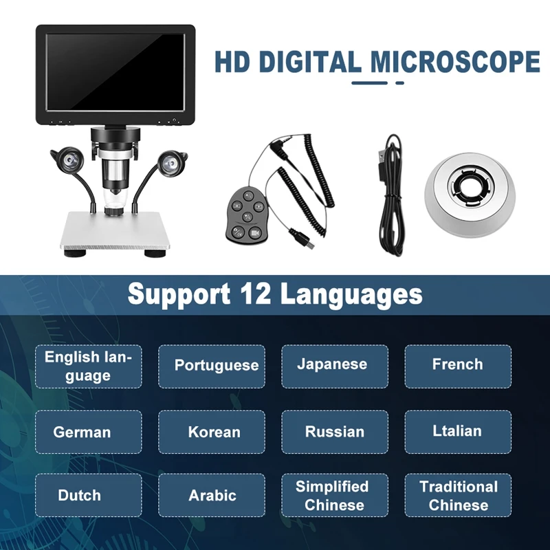 1200X светодиодный цифровой микроскоп 7 "HD ЖК-дисплей видеокамера микроскоп для ремонта часов Обнаружение кожи промышленный микроскоп