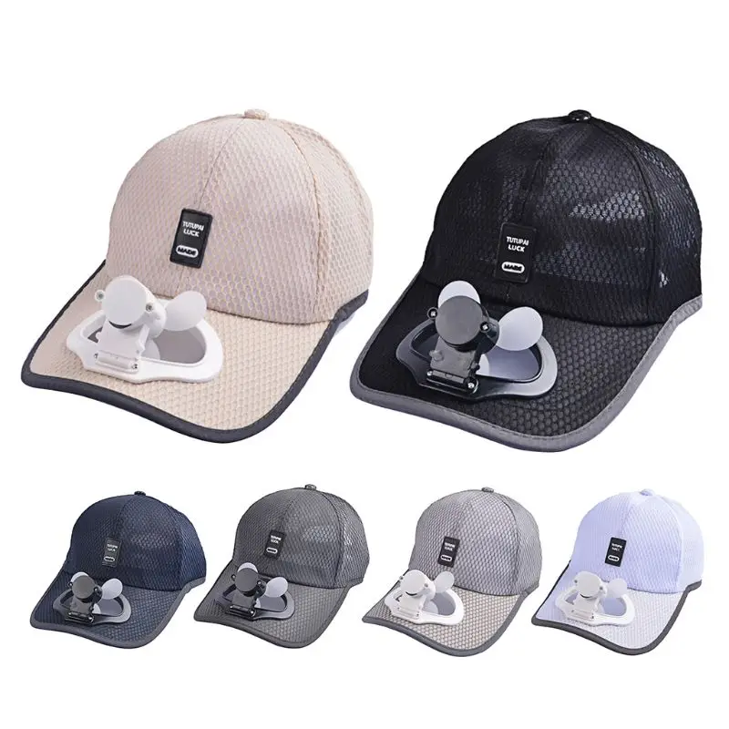 A cap that has a mini fan cooling the face, and adjustable wind speed fan to meet your different needs.