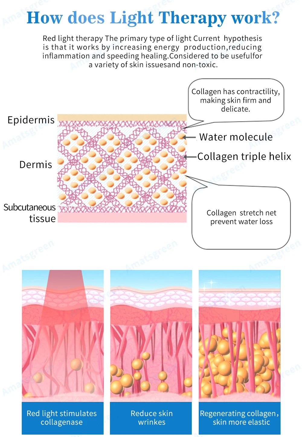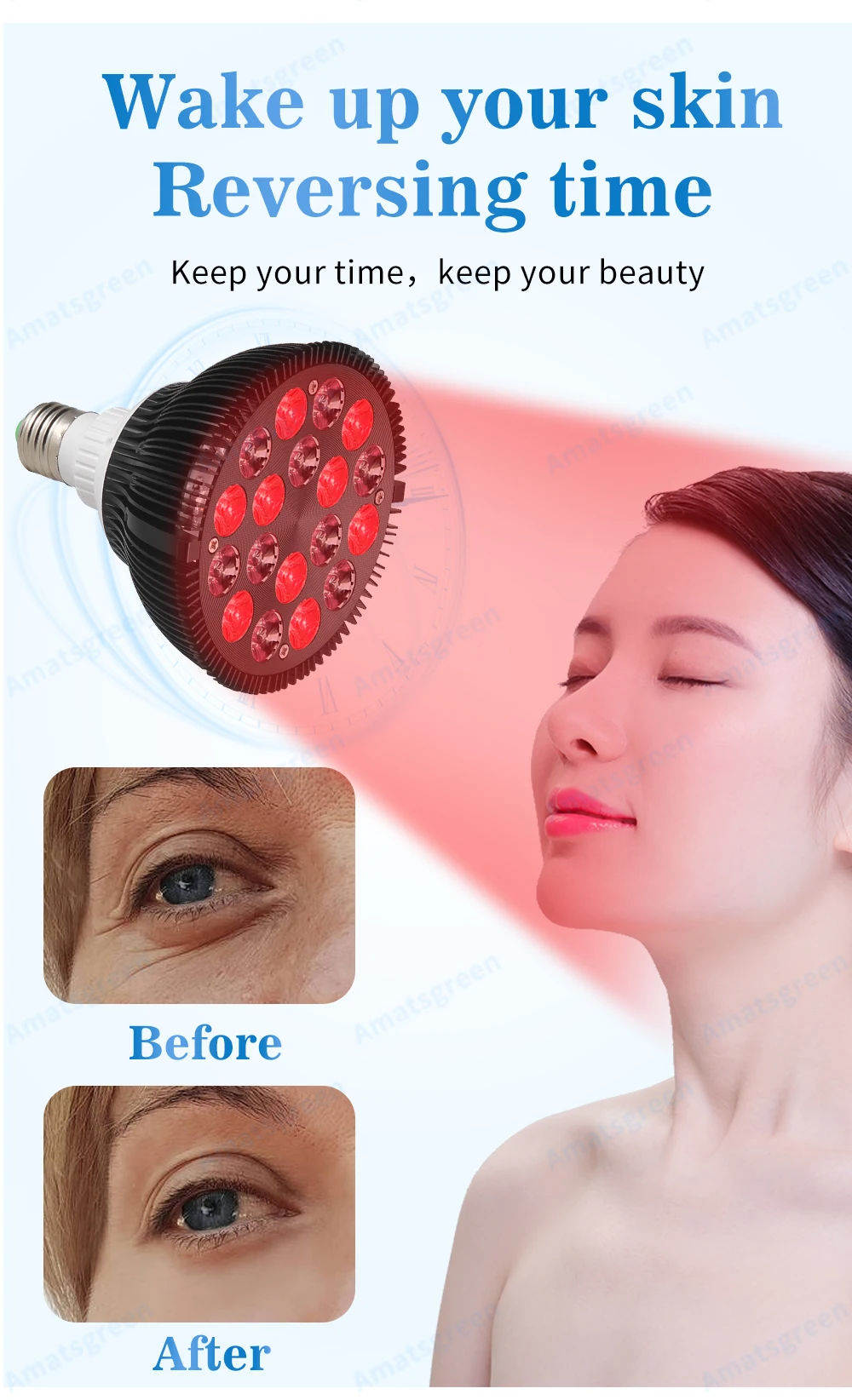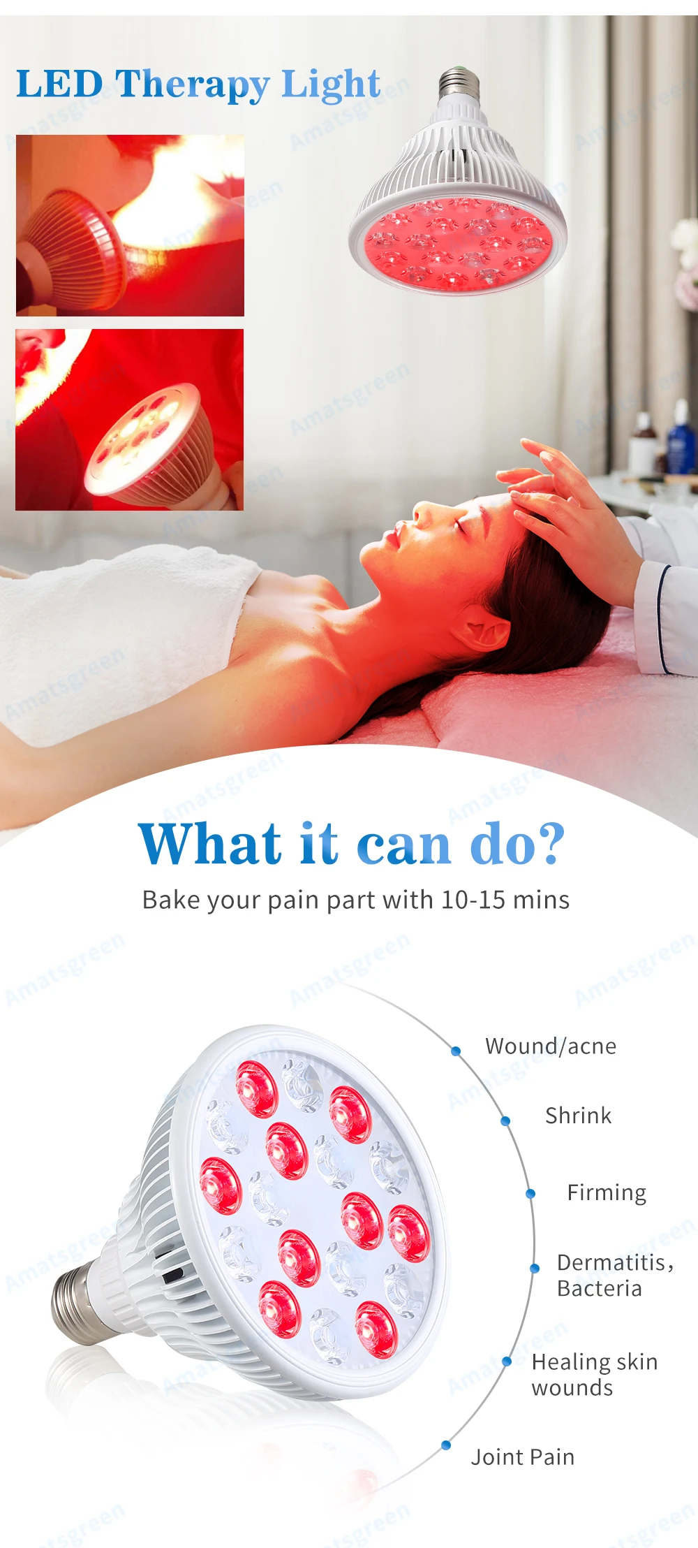 Длина волны 630нм идеально подходит для проблем с кожей, которые проникают в клетки кожи и сальные желёвки для омоложения тона и текстуры кожи путем разглаживания и вечернего удаления неровной пигментации. Преимущества уменьшения тонких линий и морщин; Улучшение состояния кожи в качестве псориаза; Восстановление роста волос; Лечение поверхностных Раков кожи; Лечение акне.