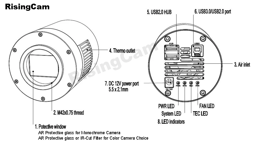 RisingCam обеспечиваетАдаптер от M42 до 1,25"ИАдаптер M42-2"Для покупателей