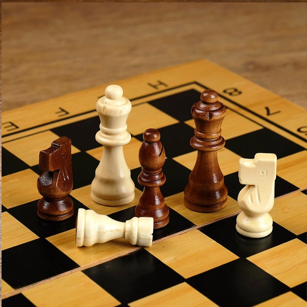 Материал шахматных фигур и шашек: дерево.