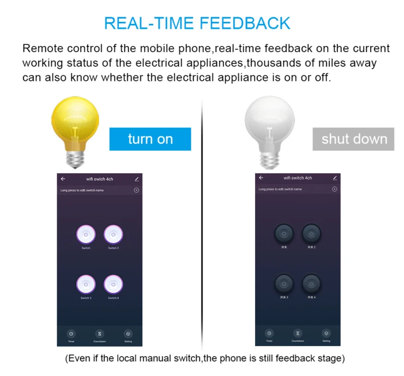 * Поддерживает сеть Wi-Fi: поддерживает многочисленные смарт-переключатели Wi-Fi на одном смартфоне.