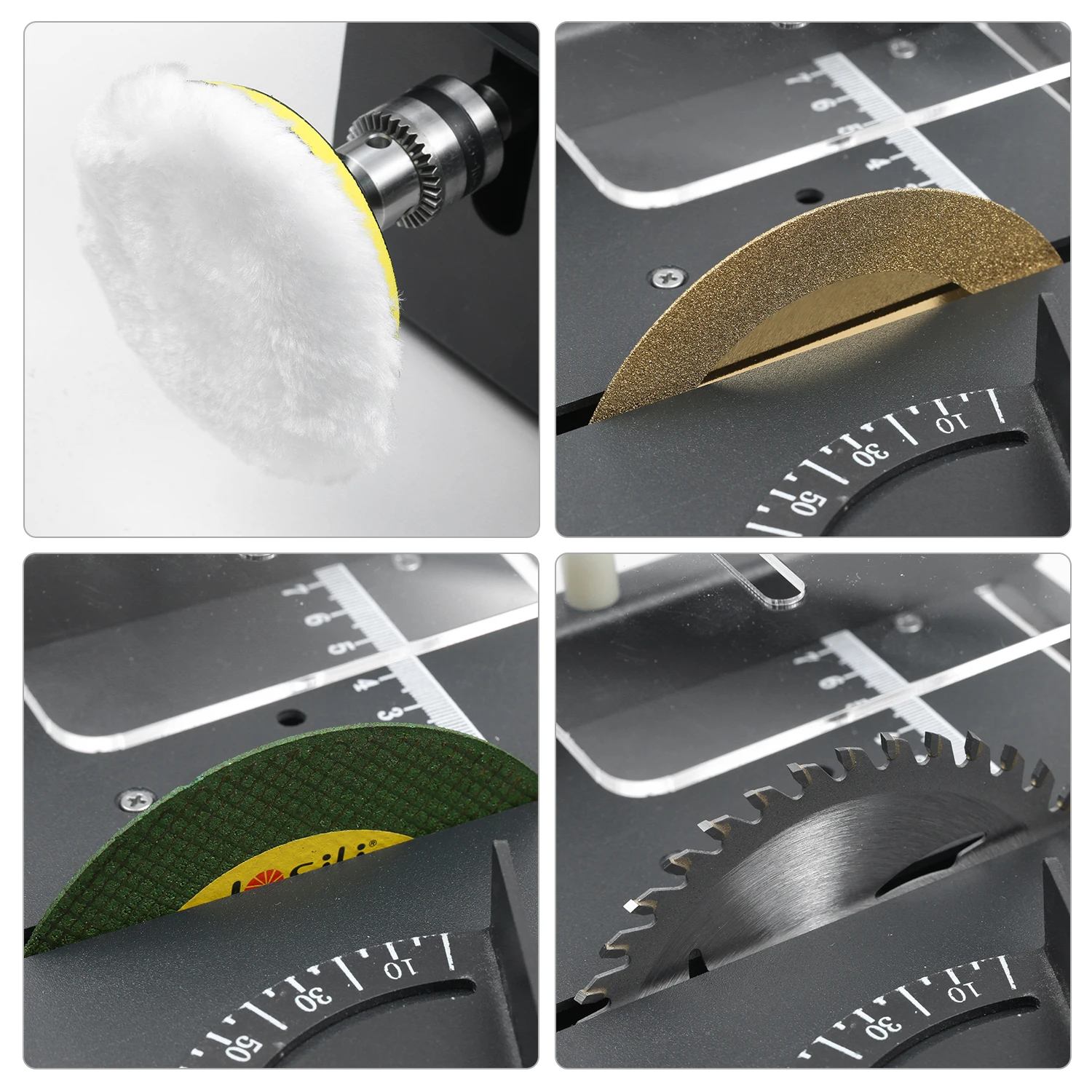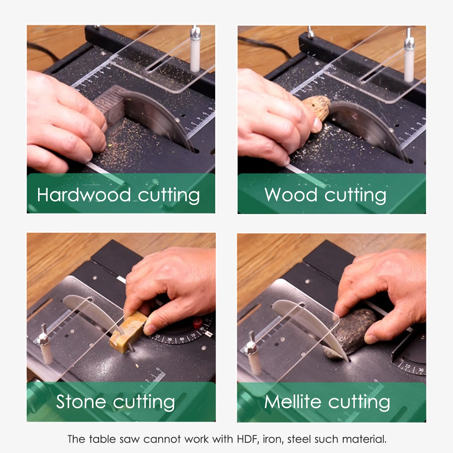 Эта Бытовая Настольная пила, прочная, портативная, практичная и простая в использовании, имеет мощный мотор, благодаря которому она достигает высокой скорости резки 3500 об/мин для резки дерева, пластиковой доски, акриловая доска и т. Д. С эффективностью. Упрощает резку.