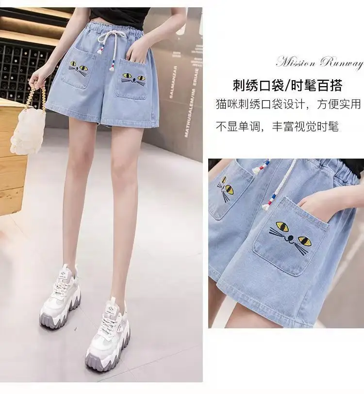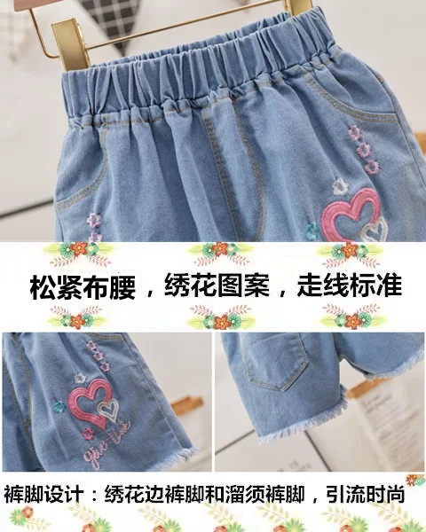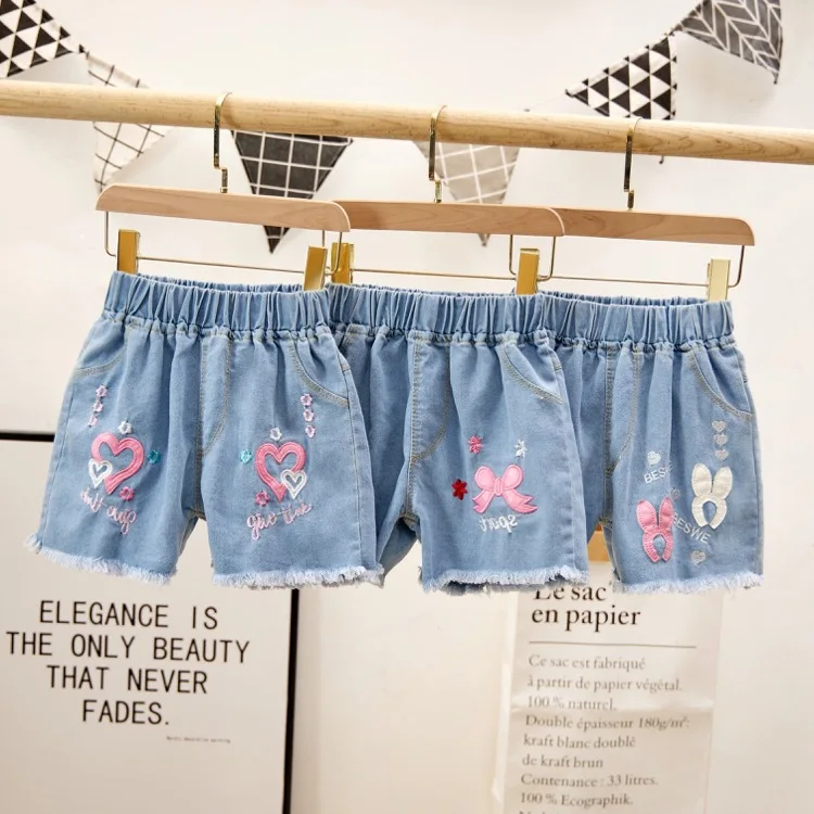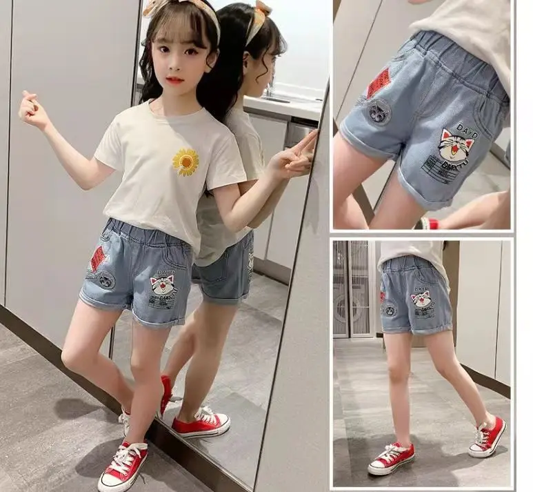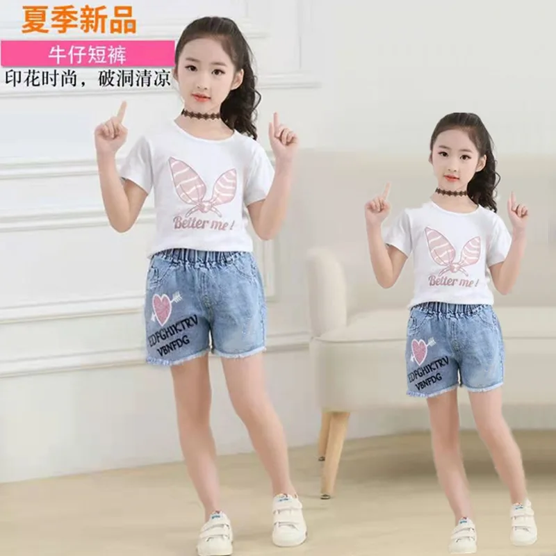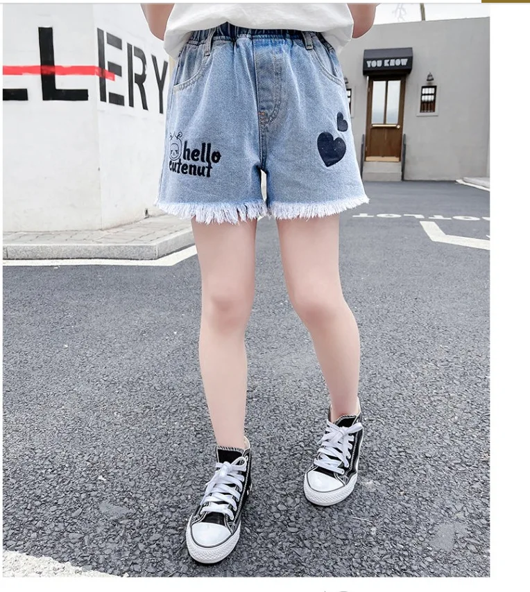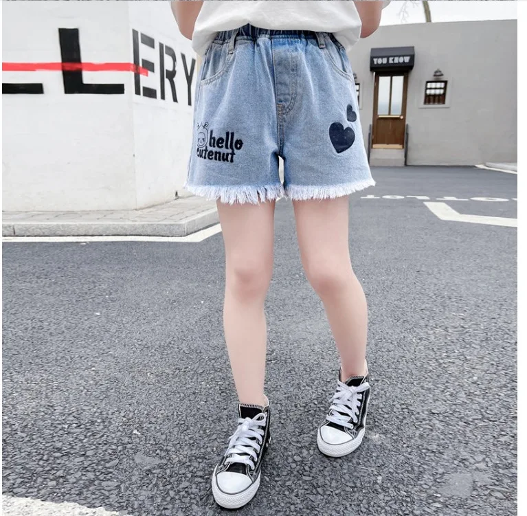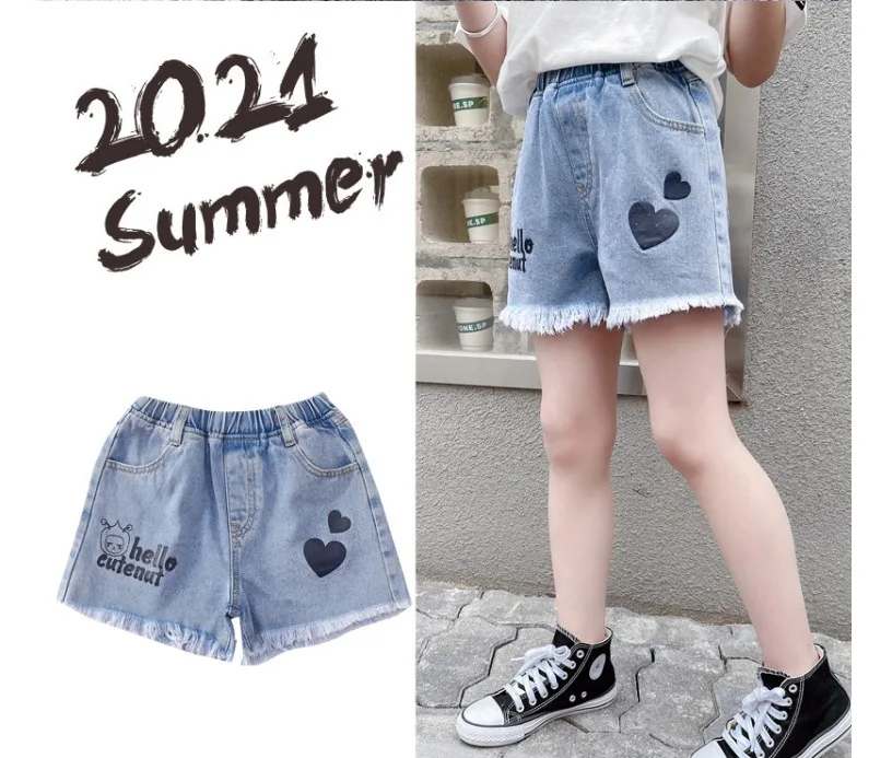 Джинсовые шорты для девочек; Новинка 2021 года; Летние Короткие штаны с принтом; От 3 до 12 лет; Детские штаны; Хлопковая одежда в Корейском стиле для подростков