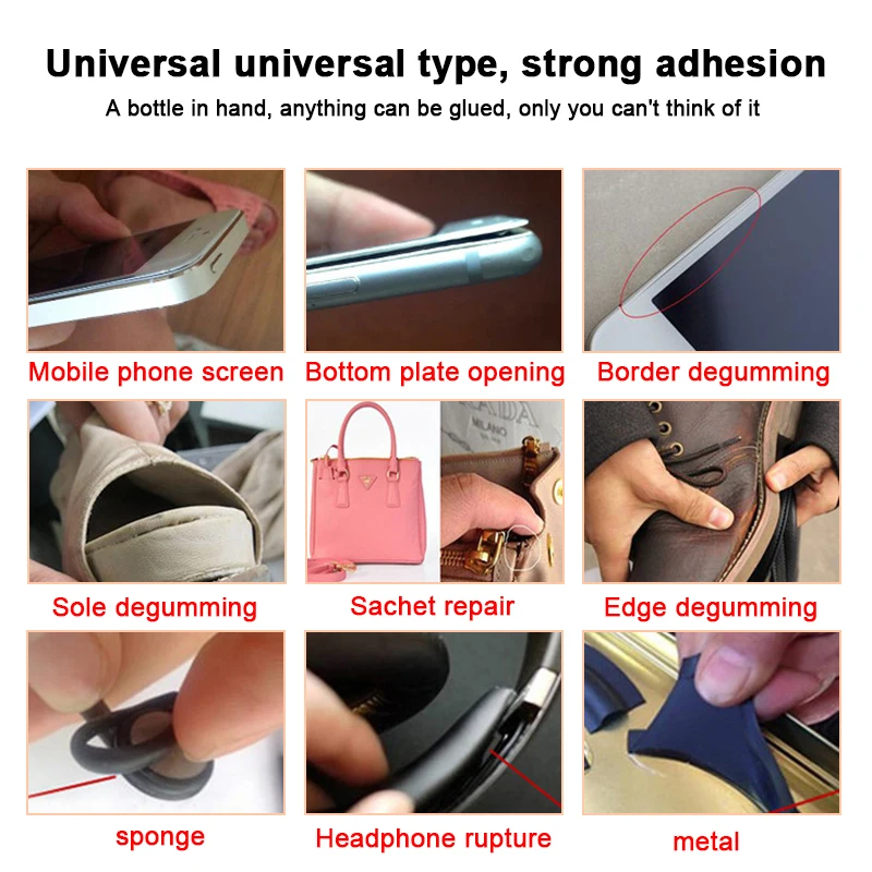 B7000 клей может быть использован для прикрепления большего количества материалов к металлу, стеклу, керамике, камню, бамбуку, ткани, коже, PE, PP, PVC, ABS, нейлону, губке, пленке, ткани, электронным компонентам, пластик, резина., волокно, бумага, наклейка для телефона, ЖК-экран, Средняя рама, рама, кронштейн и т. Д.