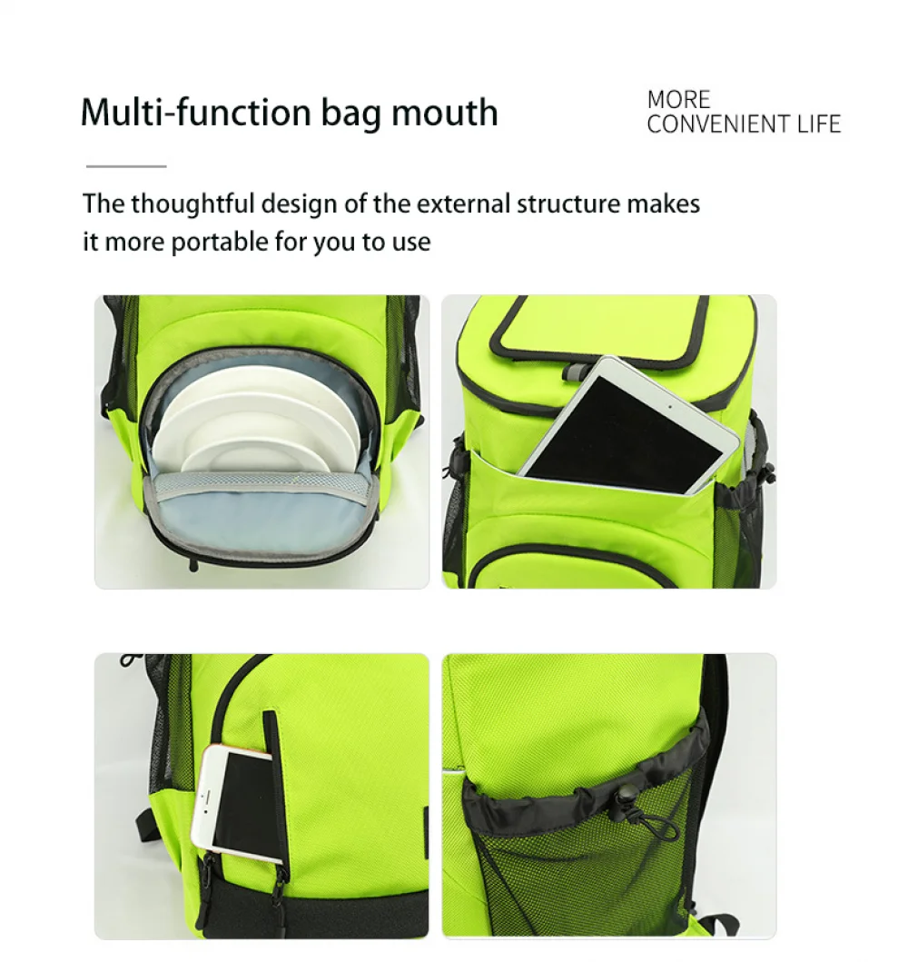 Материал: Рюкзак-холодильник использует теплоизоляционный материал высокой плотности и внутреннюю полимерную герметичную подкладку для обеспечения герметичности и сохранения продуктов питания или напитков внутри.