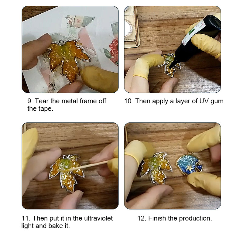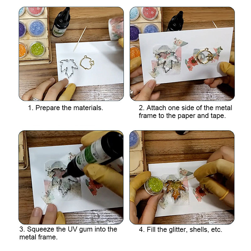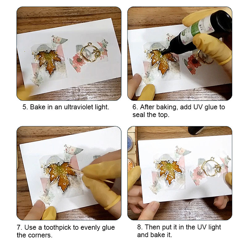 3.Многоцелевой, УФ-клей может быть широко использован для ваших литья и нанесения покрытия, таких как украшения для поделок, изготовление ювелирных изделий, аксессуары для одежды, инкапсуляционные предметы, сделать картины из смолы и т. Д.