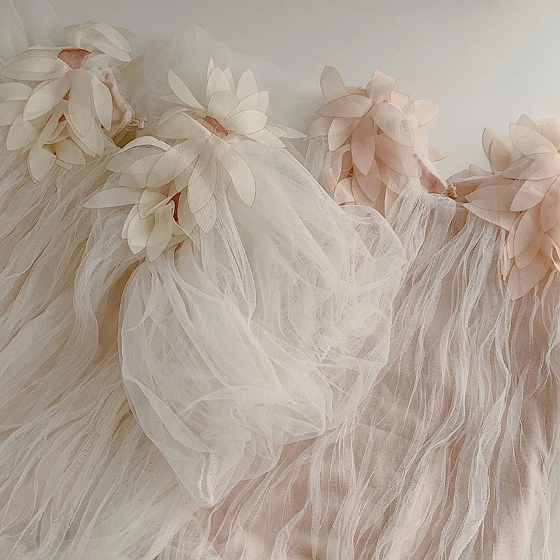 Костюмы для маленьких девочек 0-24 месяцев, летний детский комбинезон без рукавов с объемными лепестками, одежда для маленьких девочек, сетчатый комбинезон из фатина для маленьких девочек