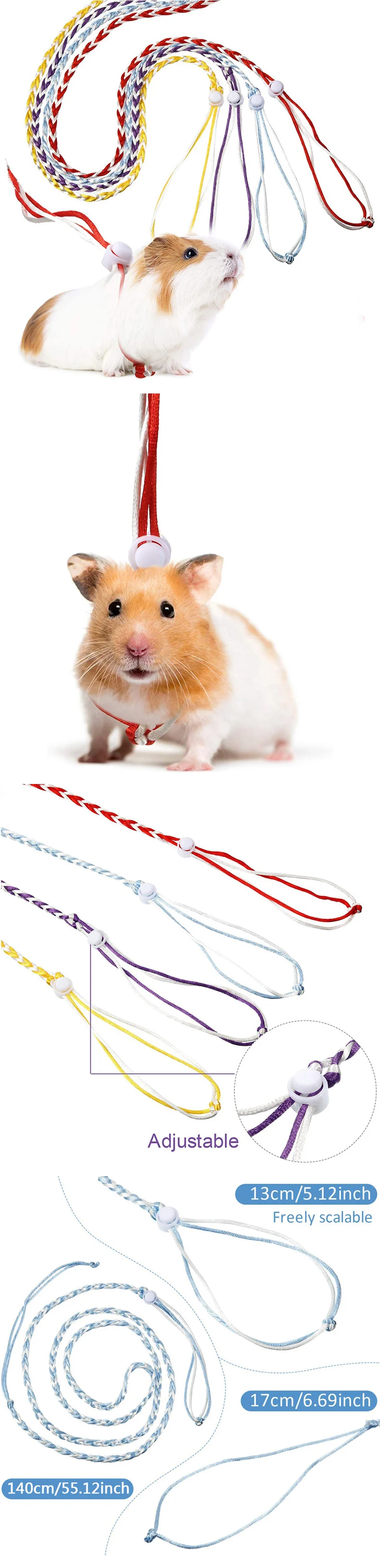 1. Название продукта: Хомяк поводок ошейник 2. Материал: нейлоновая веревка 3. Цвет: случайный 4. Размеры: около 140*0,5 см/55,12*0,20 дюйма (окружность шеи: около 2 - 9 см/0,79-3,54 дюйм (ов) 5. Применение: Хомяк, морская свинка, кобая, кролики, хорьки для домашних животных, маленький медведь, молодые шиншиллы и т. д.